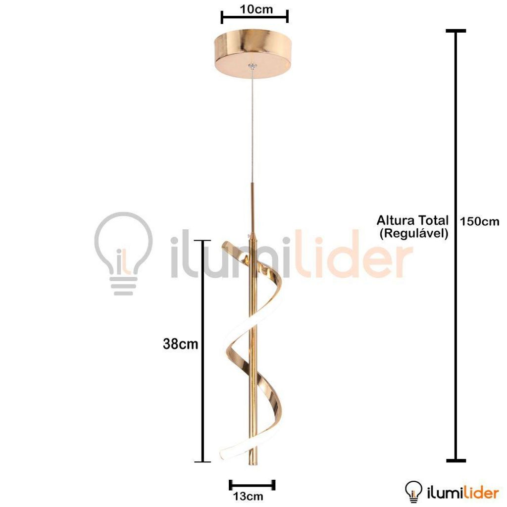 Luminária Pendente Led Espiral Moderno Teto 10w 3 em 1 Bivolt - Nitrolux