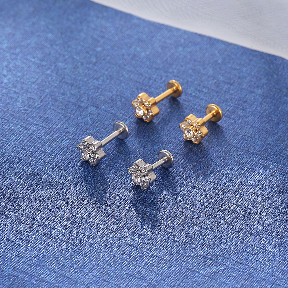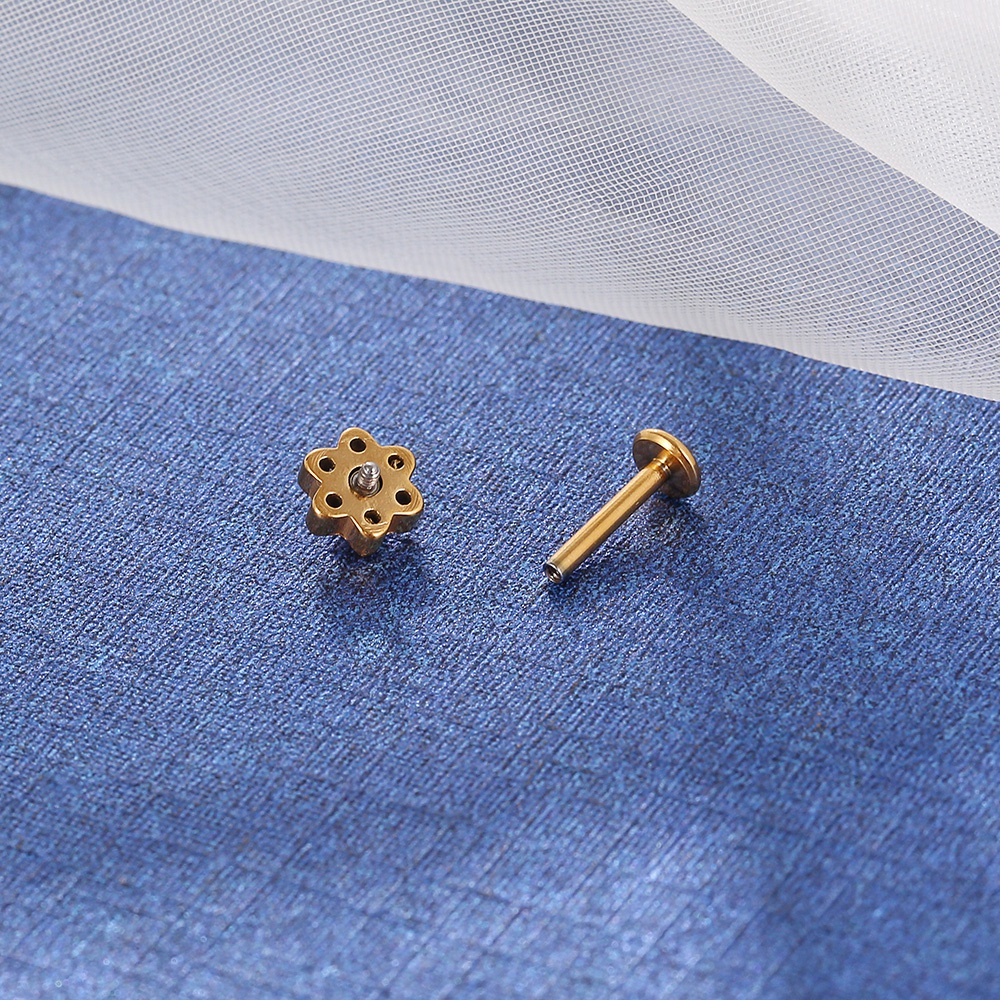 Piercing Labret Aço Cirúrgico Flor Zircônia | Helix, Tragus, Conch, Nariz, Boca-Medusa e Outros