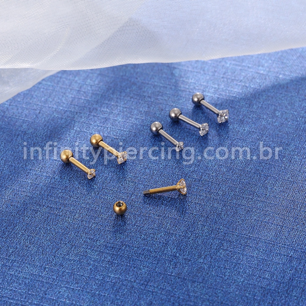 Piercing Microbell Zircônia Redonda Titânio/ Helix, Tragus, Conch, Nariz, Boca-Medusa e Outros