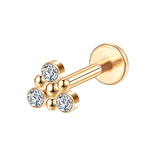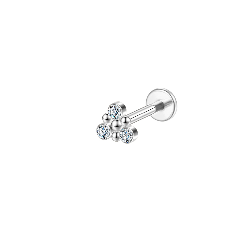 Piercing Helix Tragus Conch Boca-Medusa Labret Aço Cirúrgico Pvd Triângulo 3 Zircônias