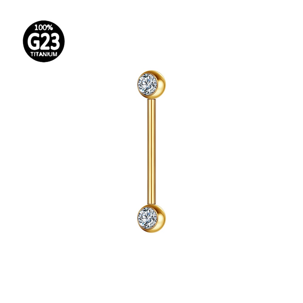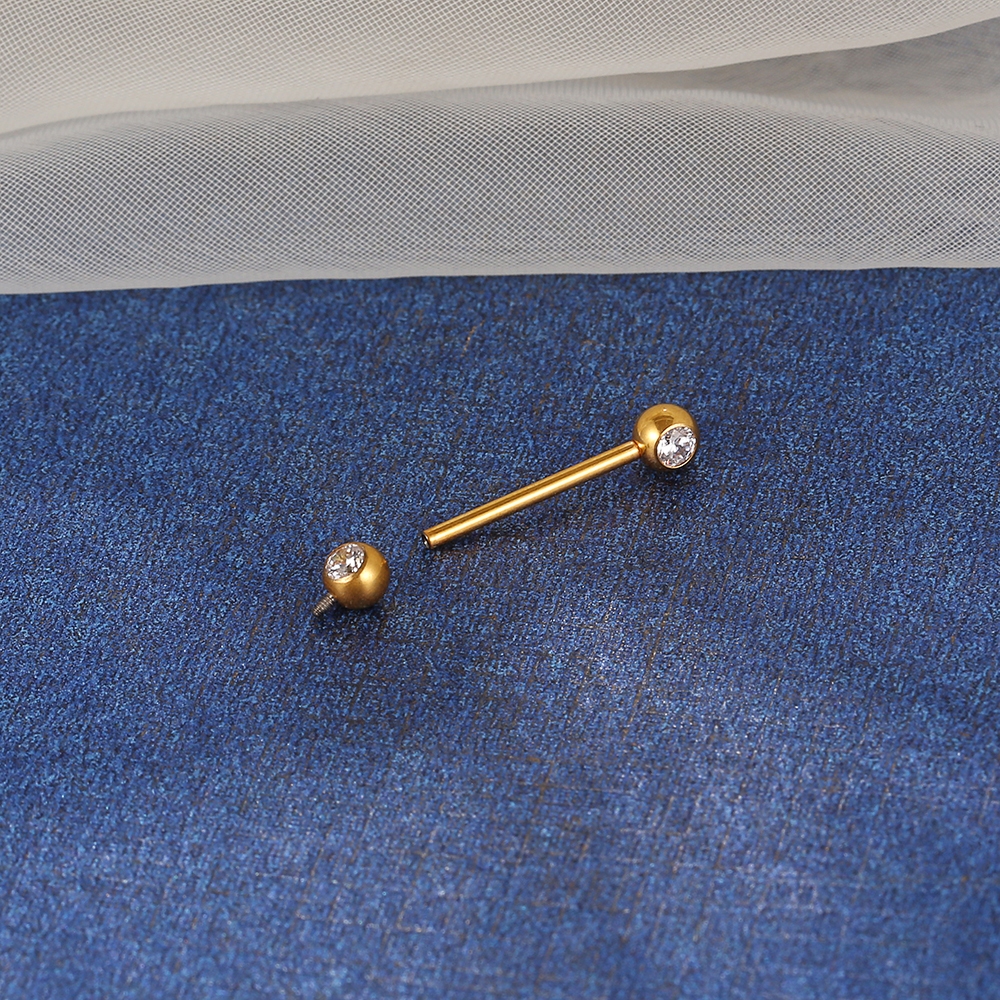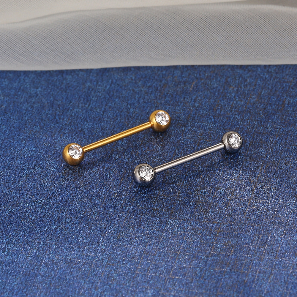 Piercing Mamilo Língua Barbell Titânio Pvd Rosca Interna Zircônia Cravada