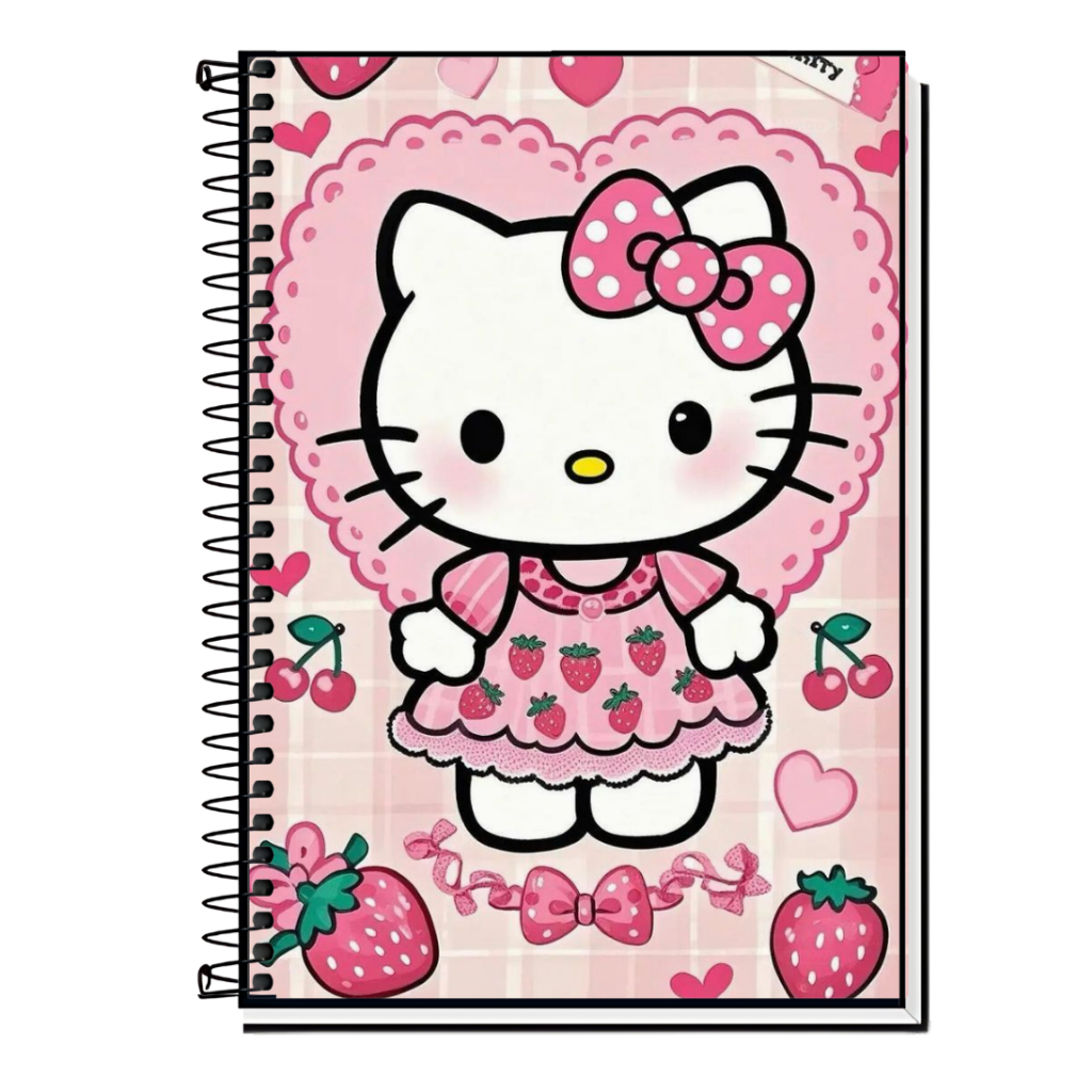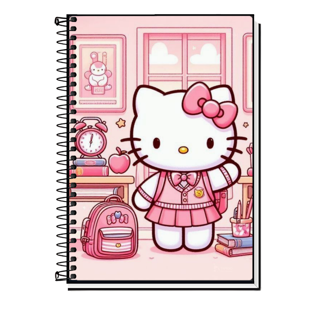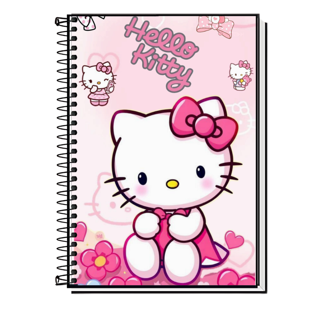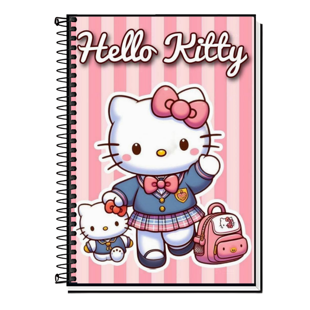 Caderno Hello Kitty | Infantil | Capa Dura & Espiral Resistente - 1,10,15 e 20 Matérias | Estilo Fofo | Volta às Aulas |