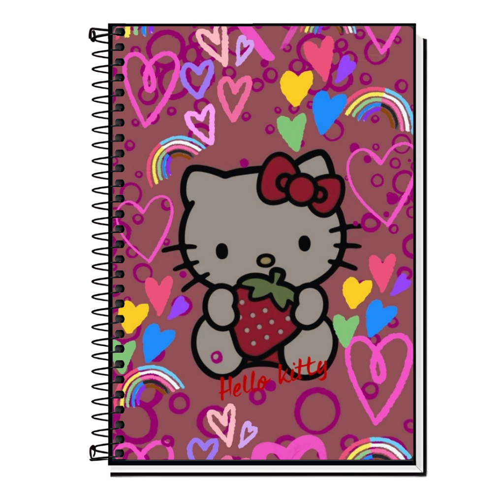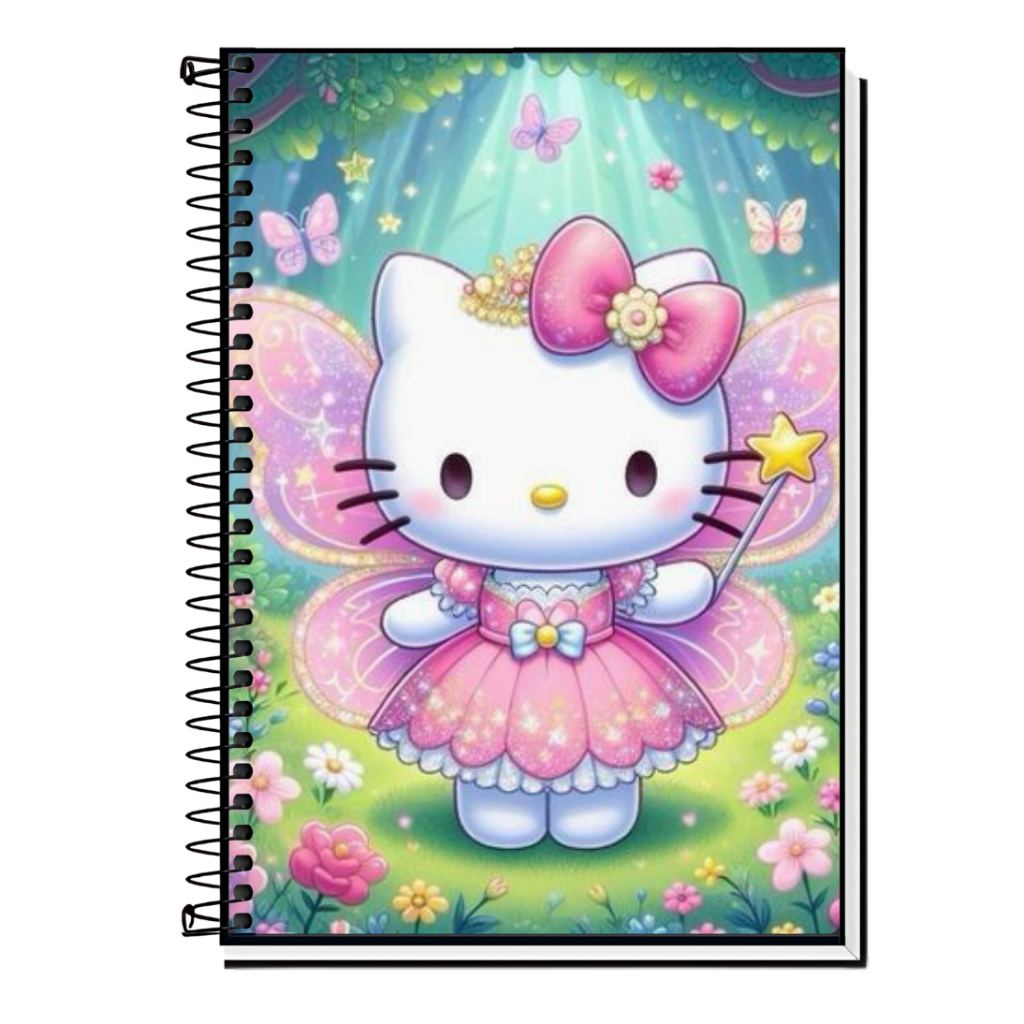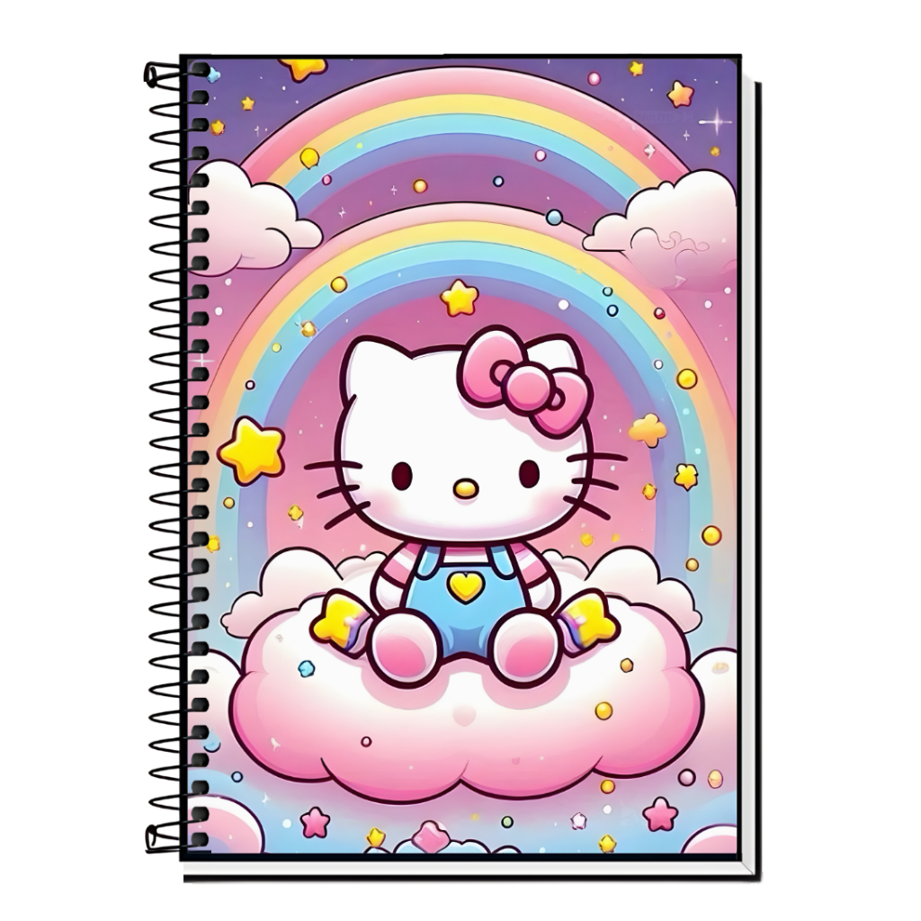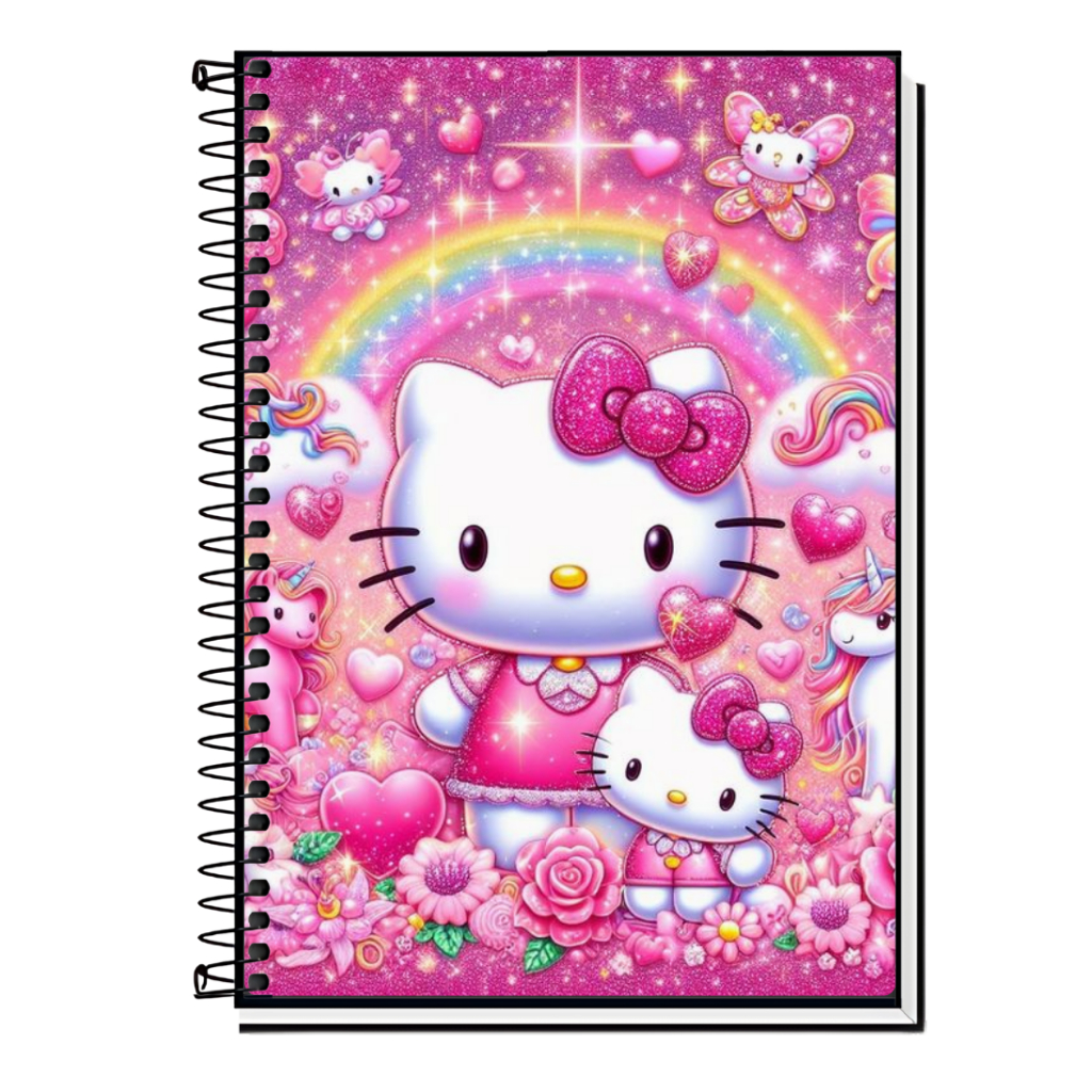 Caderno Hello Kitty | Infantil | Capa Dura & Espiral Resistente - 1,10,15 e 20 Matérias | Estilo Fofo | Volta às Aulas |