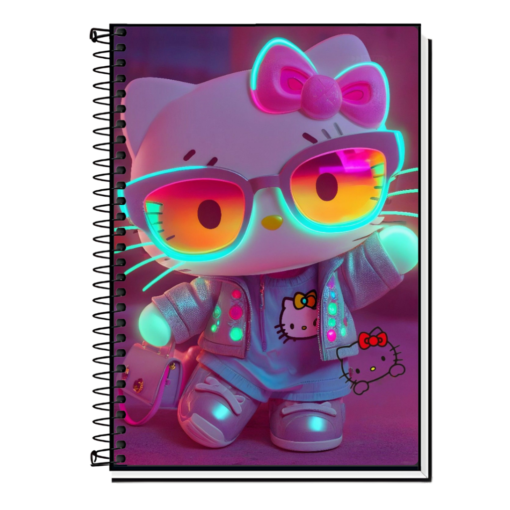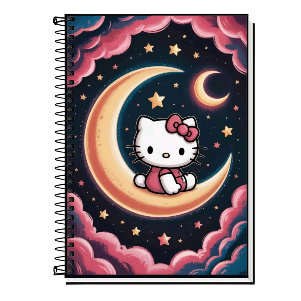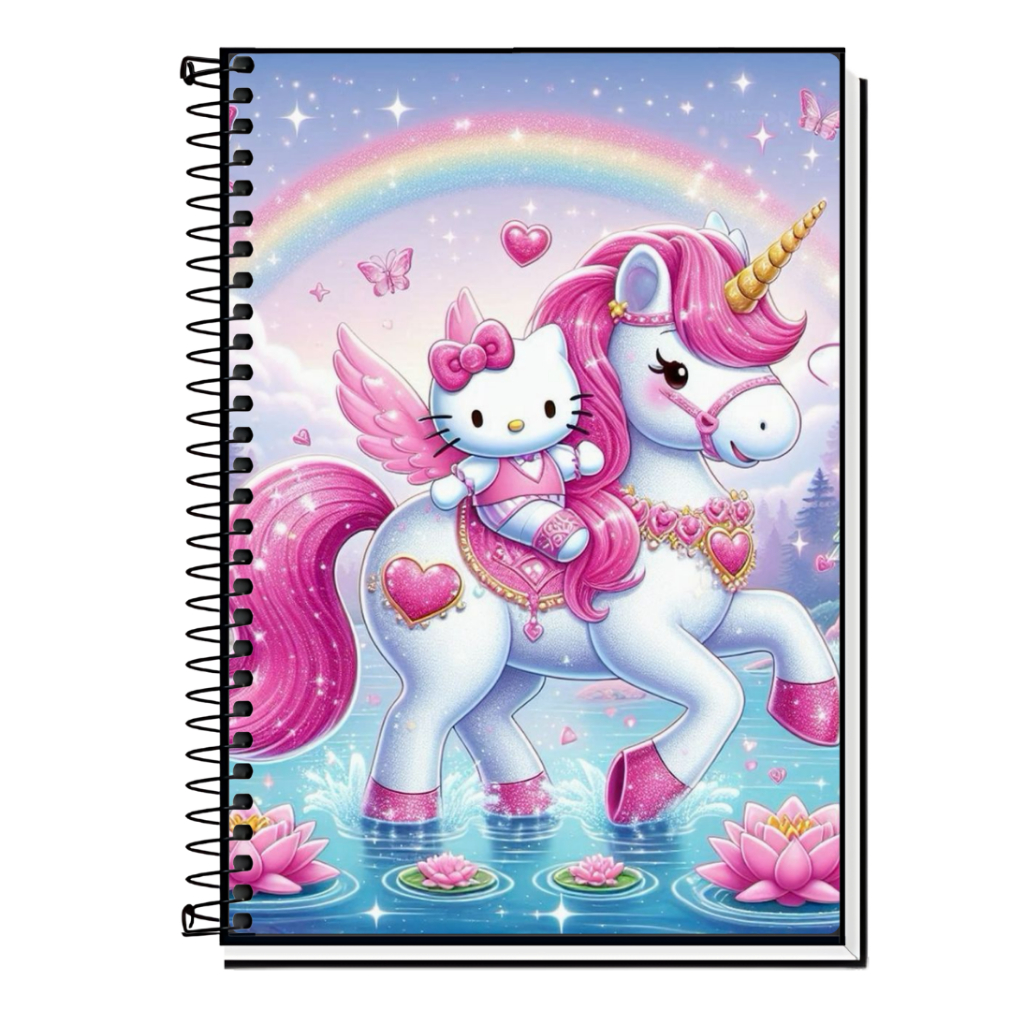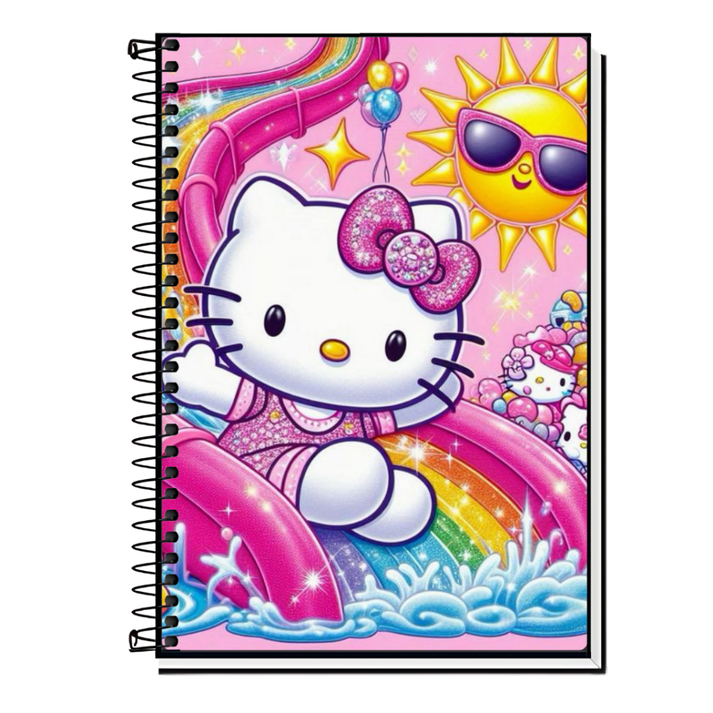 Caderno Hello Kitty | Infantil | Capa Dura & Espiral Resistente - 1,10,15 e 20 Matérias | Estilo Fofo | Volta às Aulas |