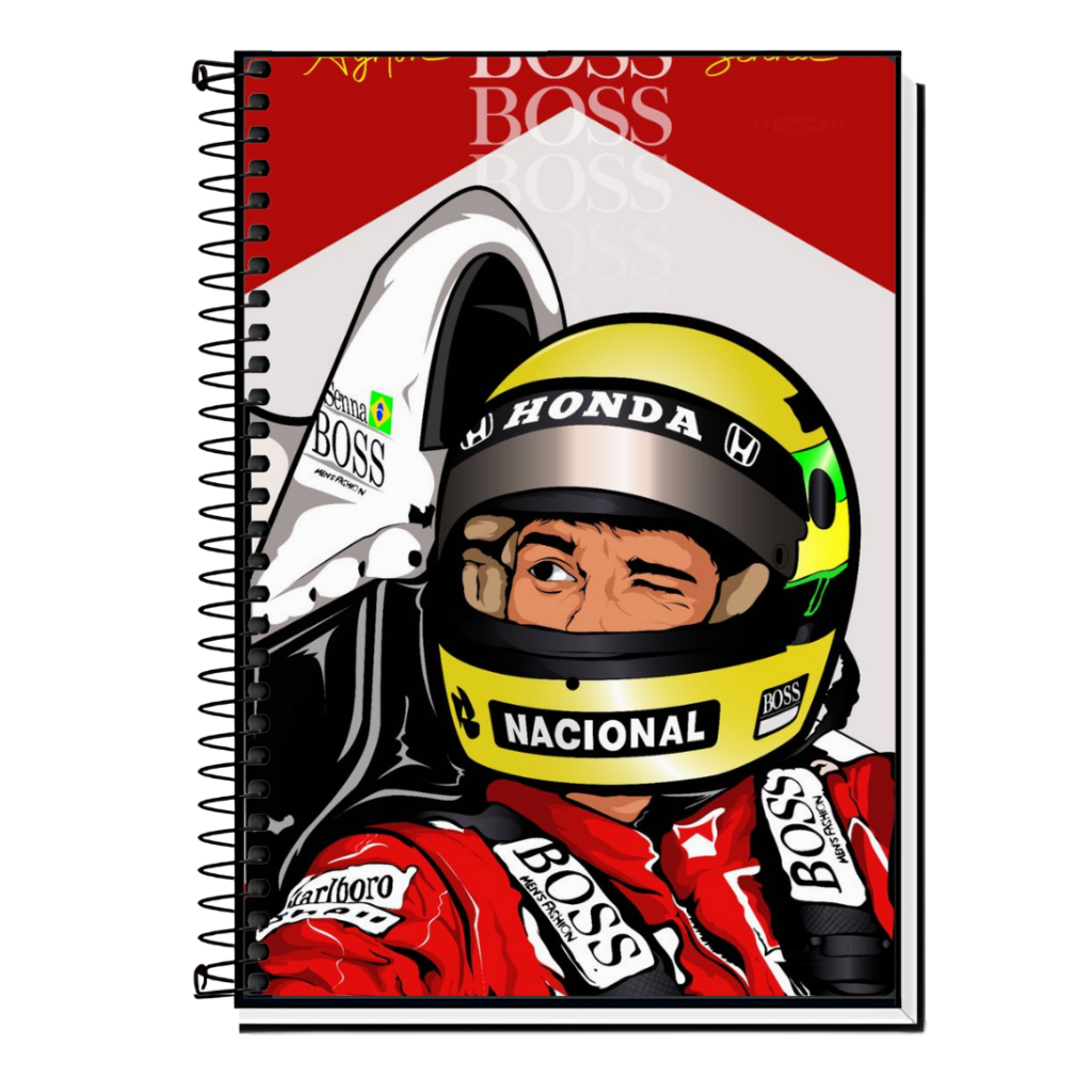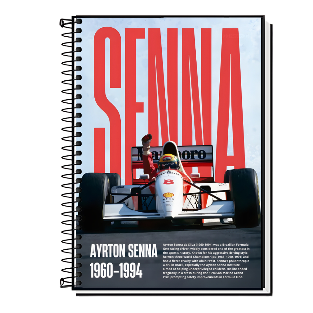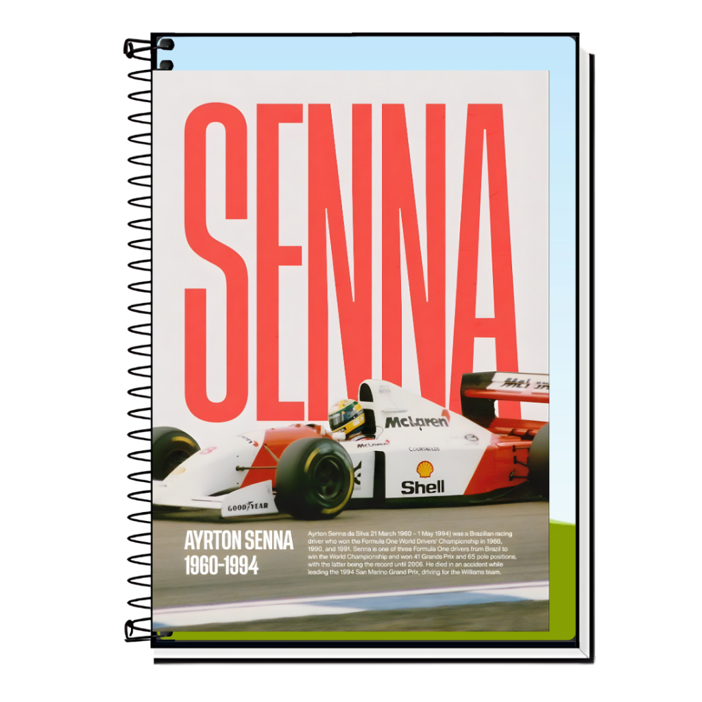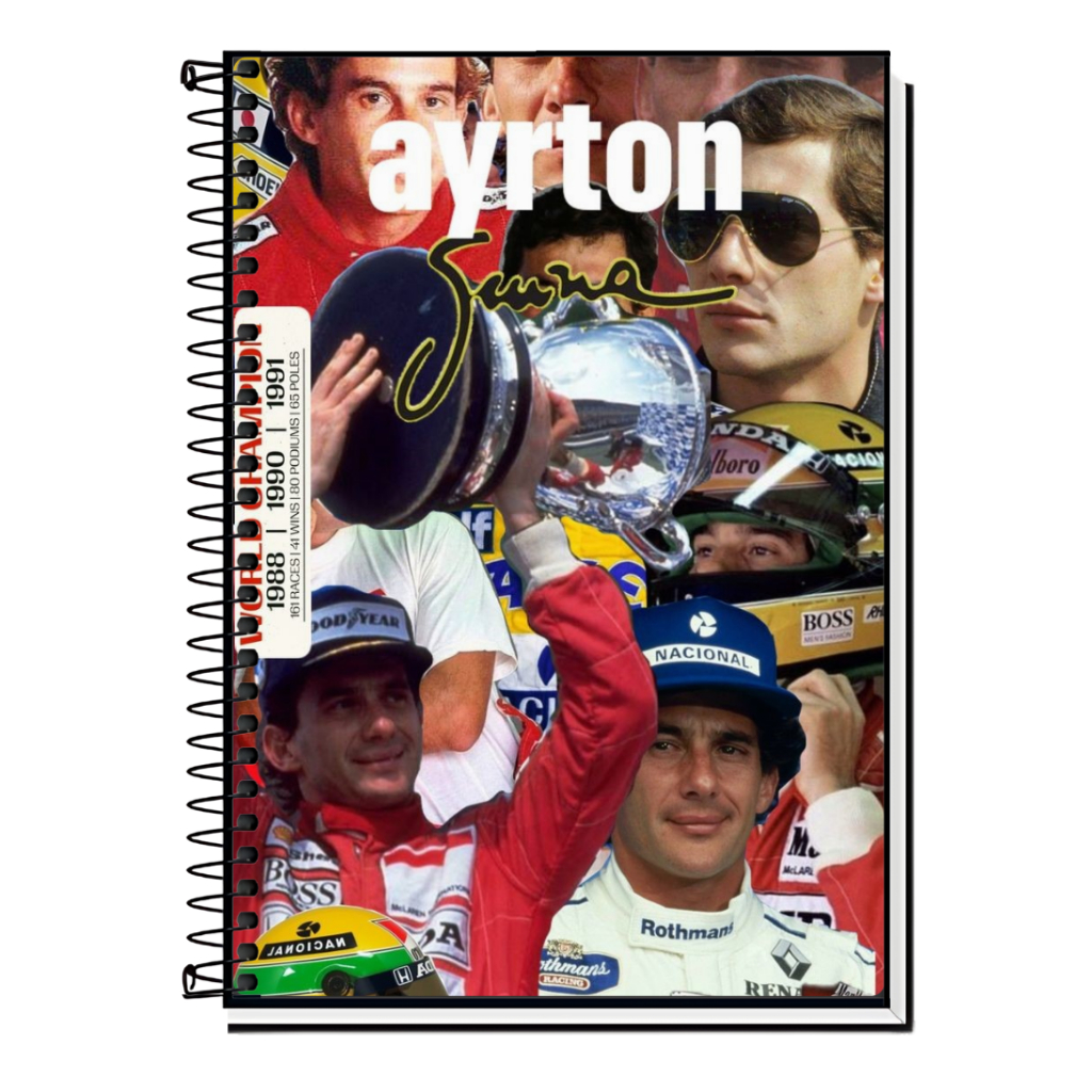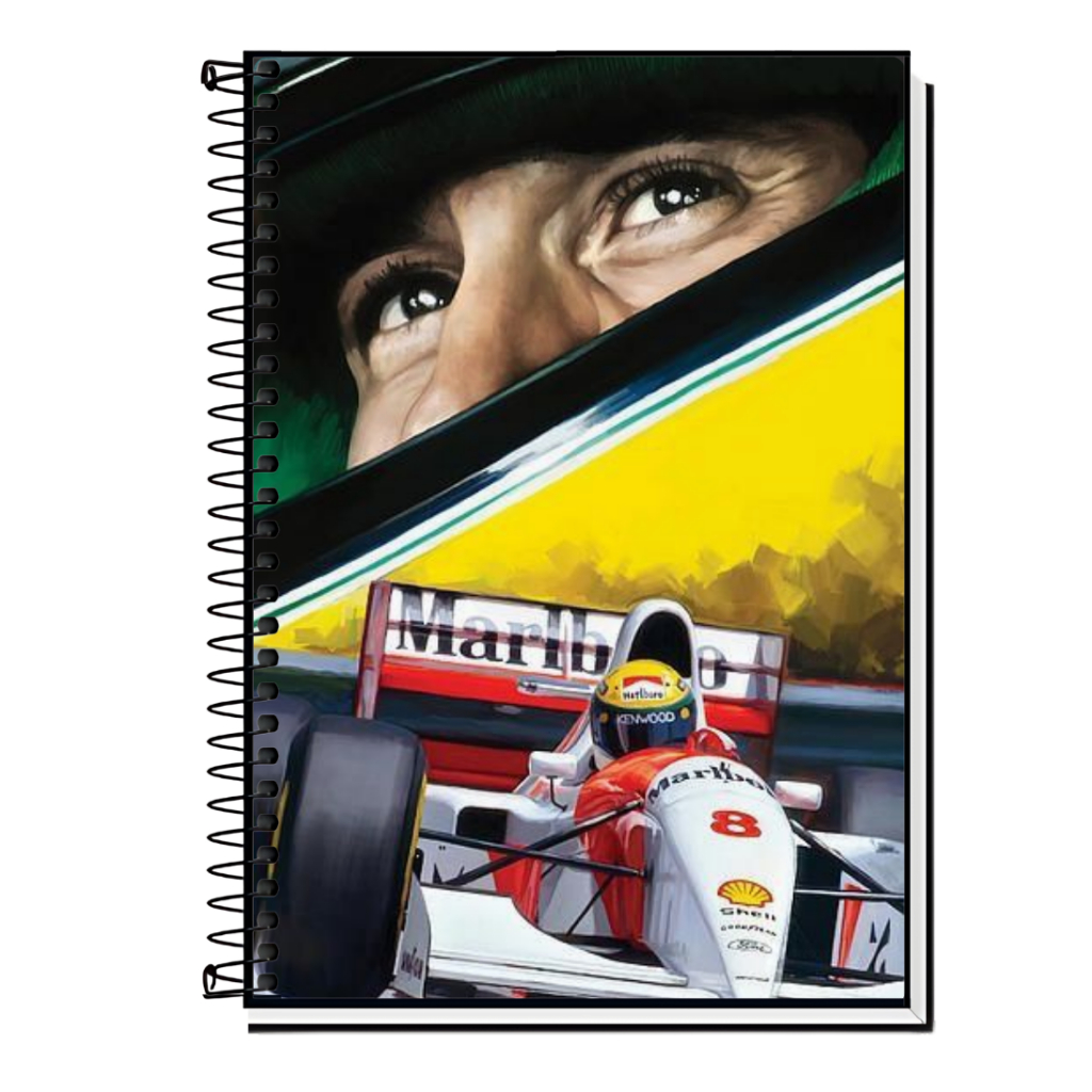 Caderno Ayrton Senna | Paixão pela Fórmula 1 | Capa Dura & Espiral – 1,10,15 ou 20 Matérias | Velocidade & Superação