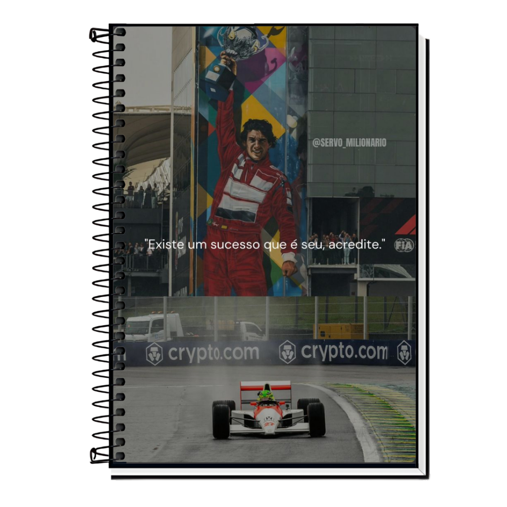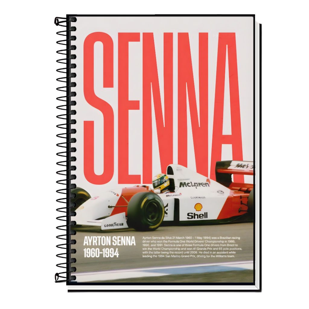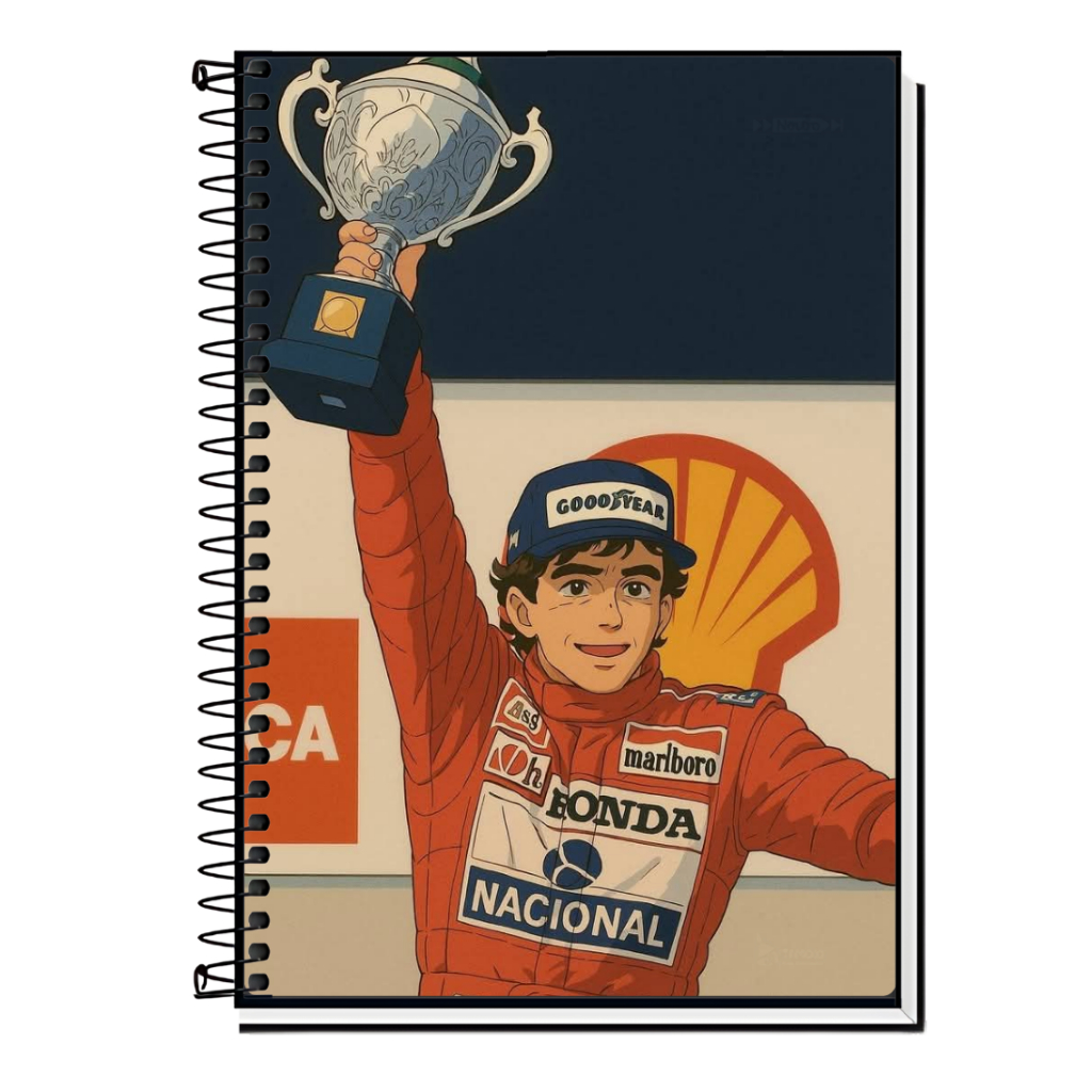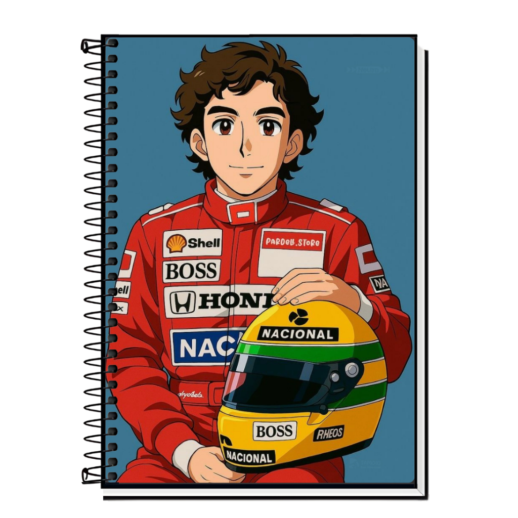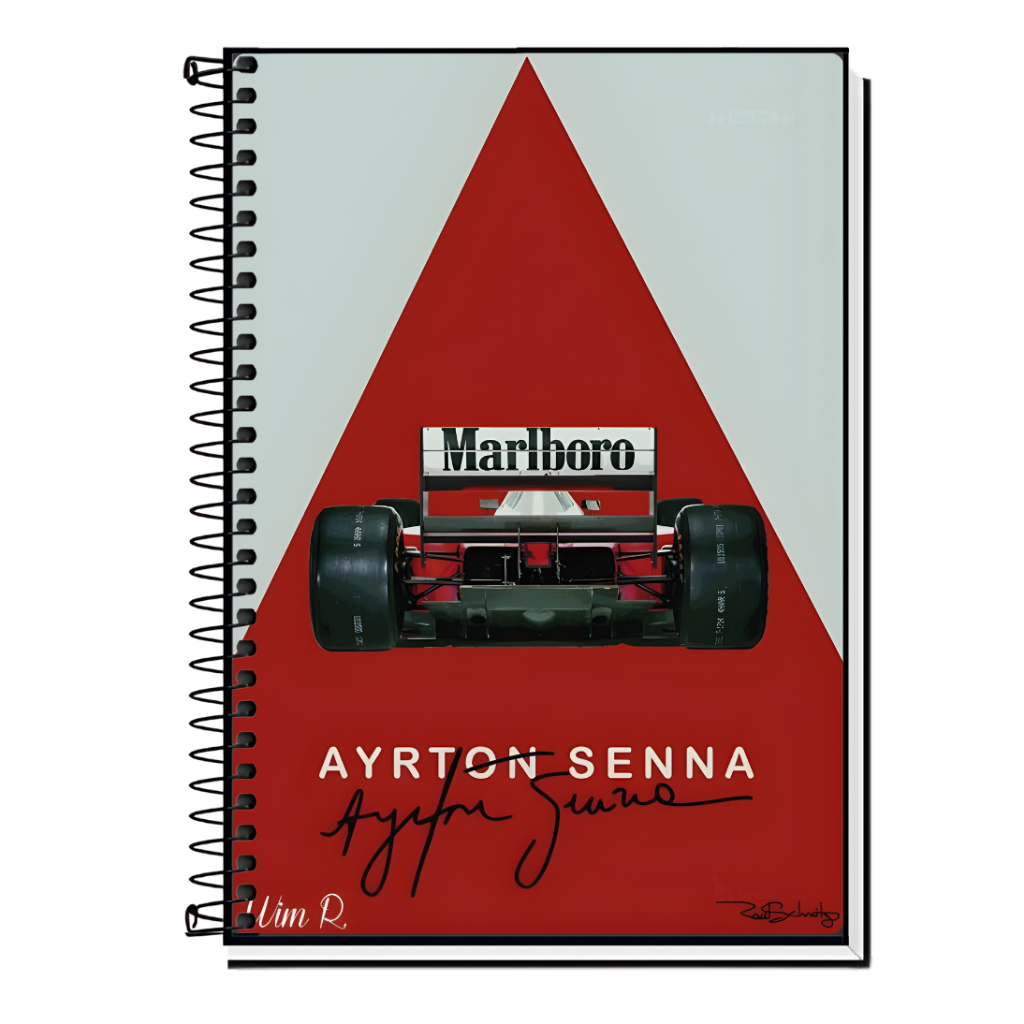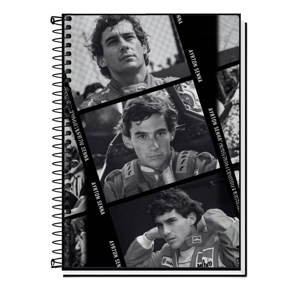 Caderno Ayrton Senna | Paixão pela Fórmula 1 | Capa Dura & Espiral – 1,10,15 ou 20 Matérias | Velocidade & Superação