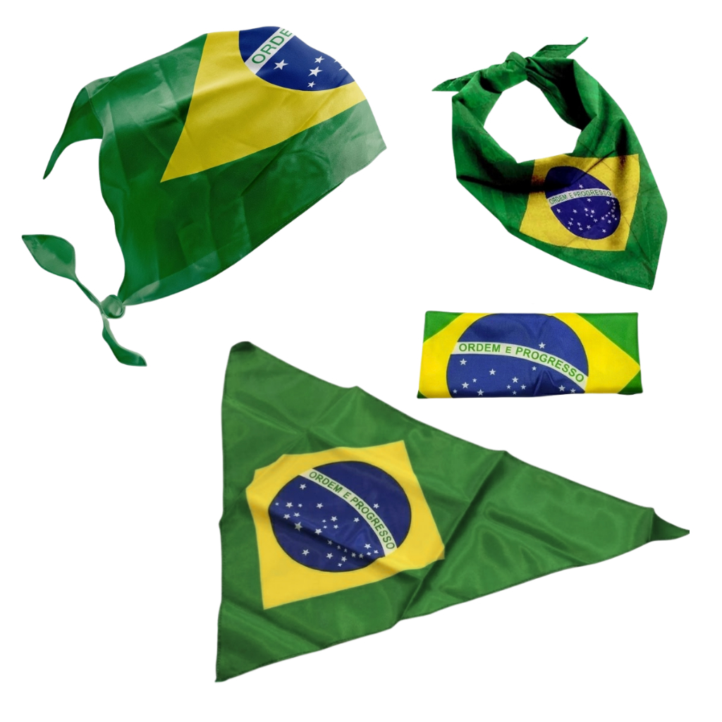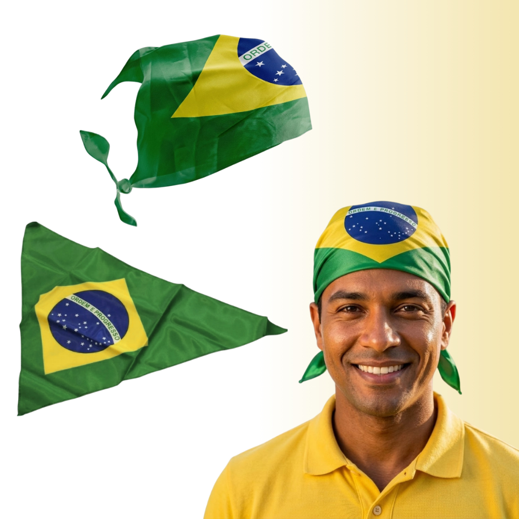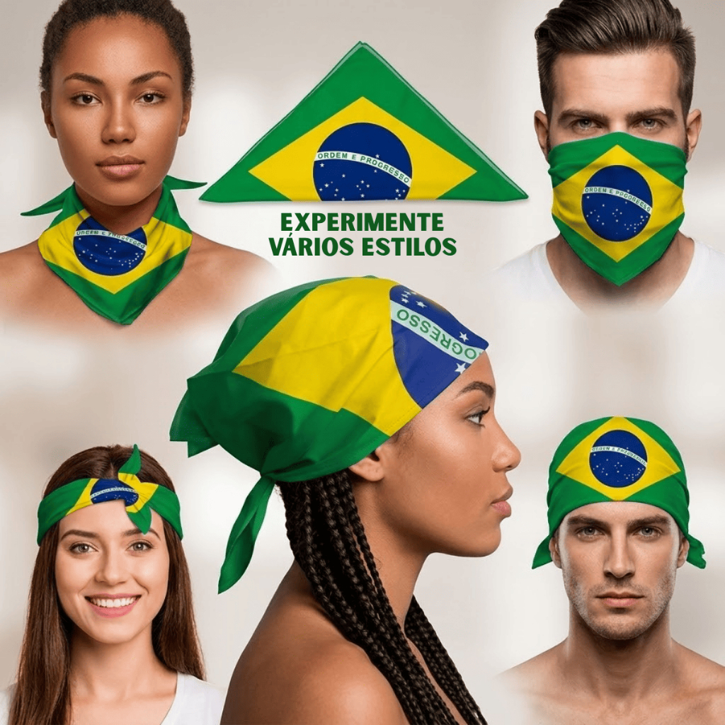 Lenço Bandana Bandeira do Brasil | Copa Jogo Seleção - Unissex Brilho Premium