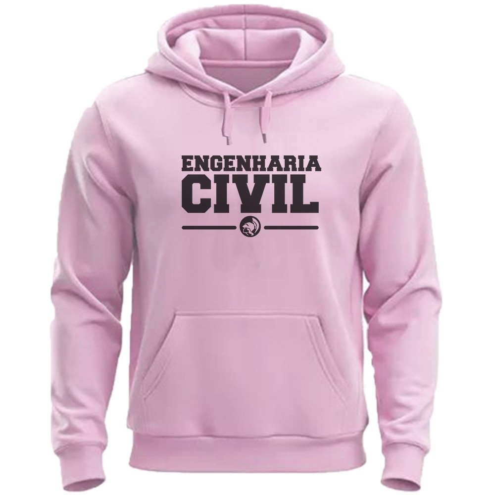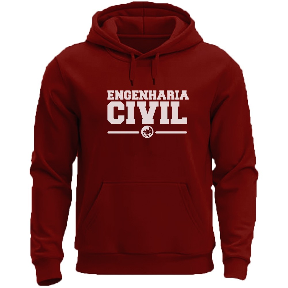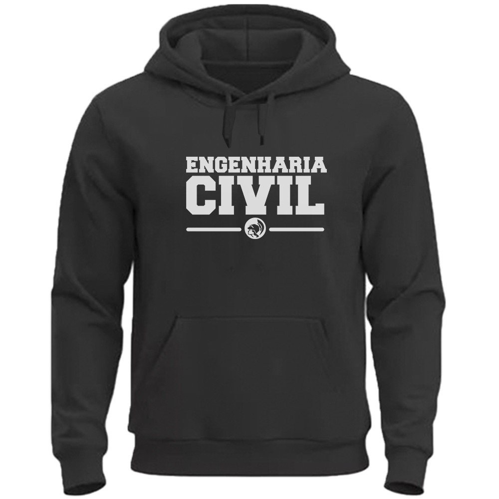 Moletom Curso Engenharia Civil Blusa de Frio Curso Engenharia Unissex Canguru Com Toca Casaco Flanelado