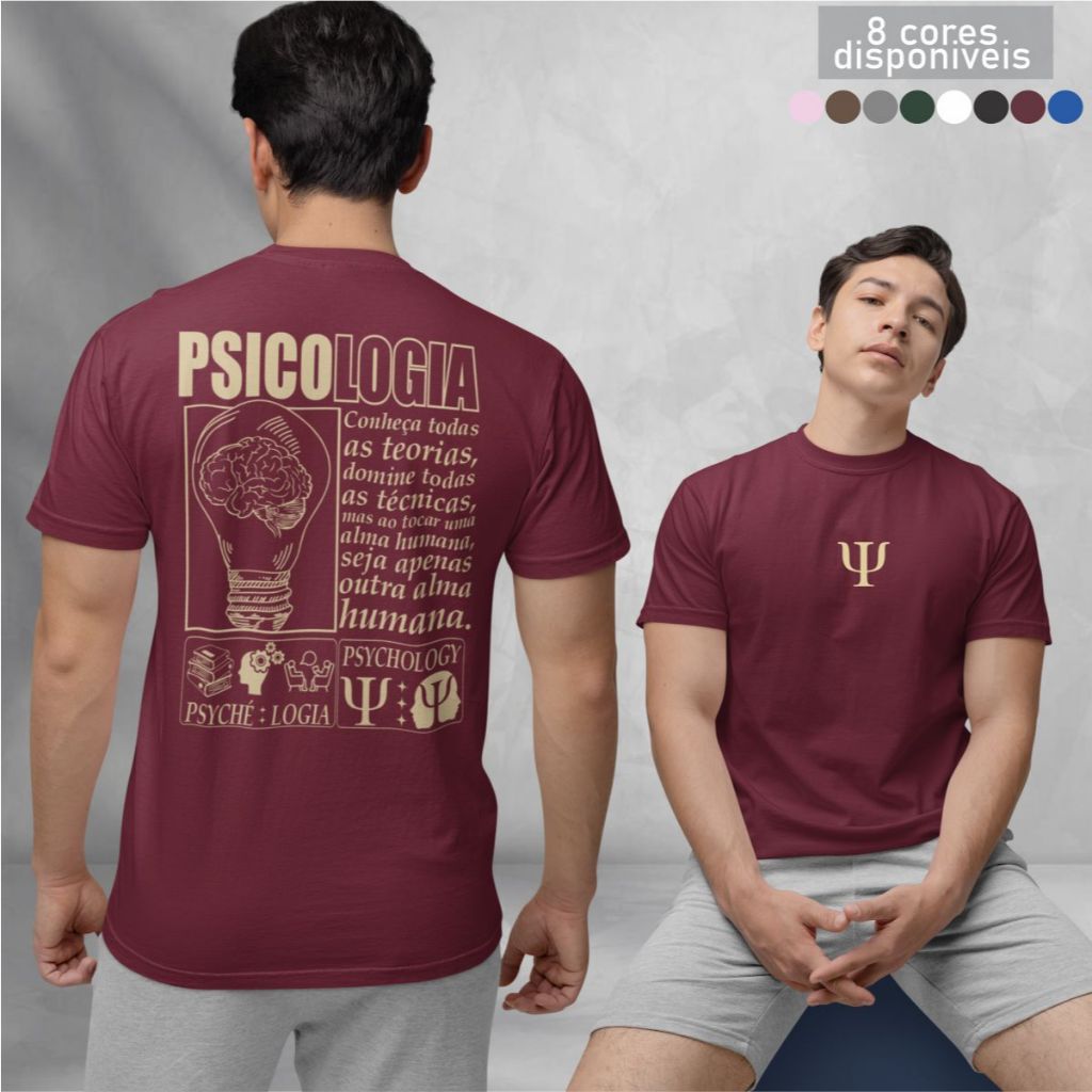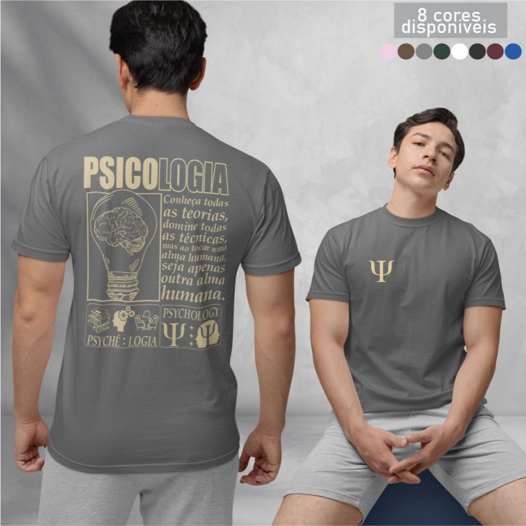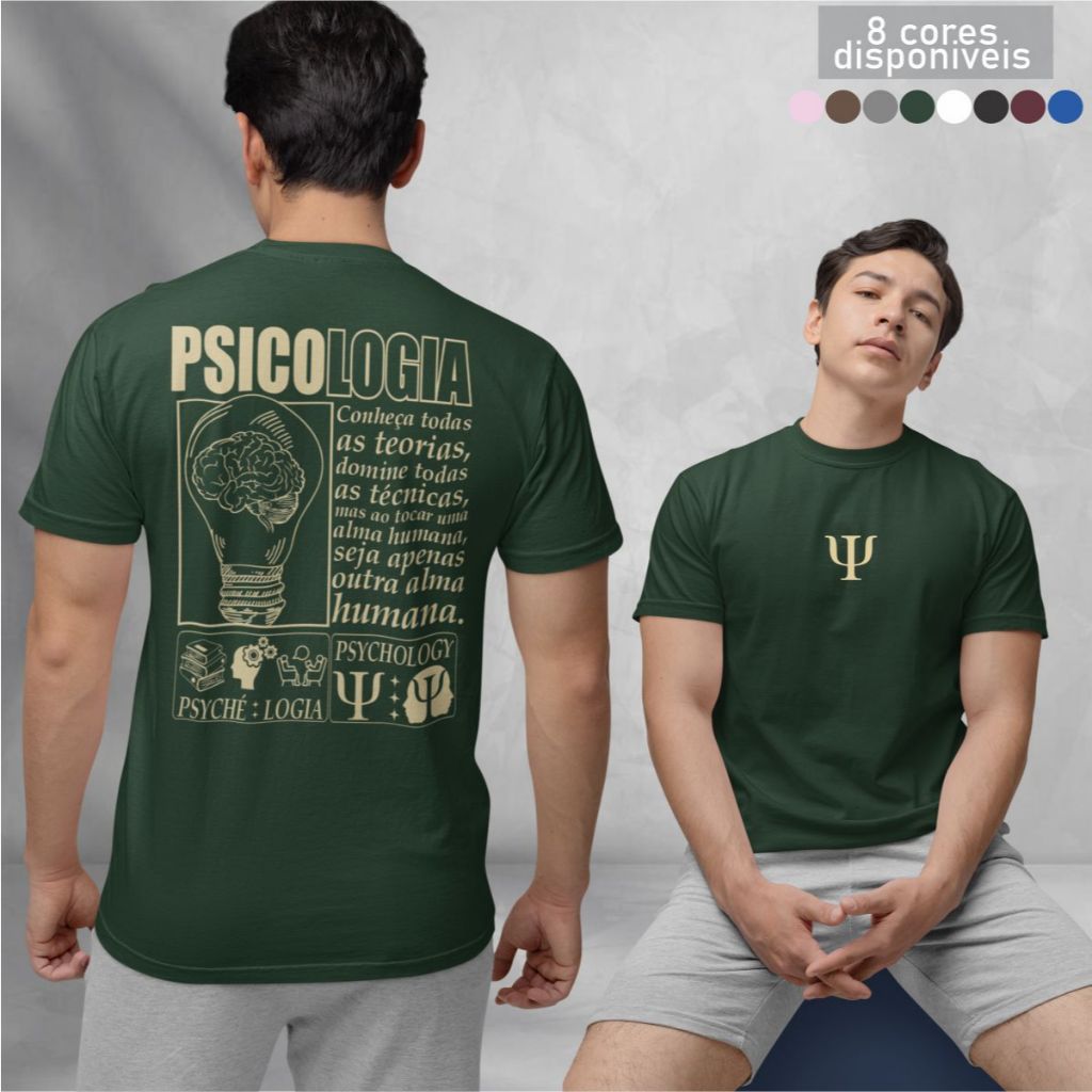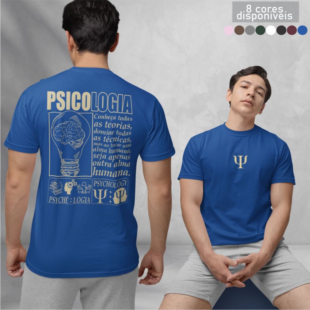 Camiseta Psicologia Masculina Manga Curta Gola Redonda 100% Algodão Pronta Entrega