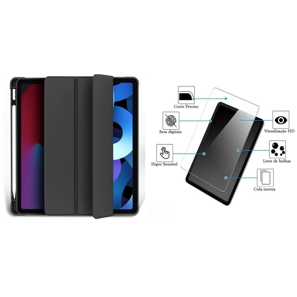 Capa capinha magnetico inteligente com slot de canetas compativel ipad 10/iPad 11 10.9pol(2022 e 2025)A2757/A2777/A3354
