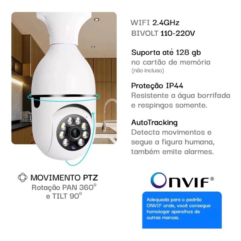Kit Câmera de segurança a Prova D'água sem fio gira 360 com app Yousee full HD visão notturna Jortan JT-8177