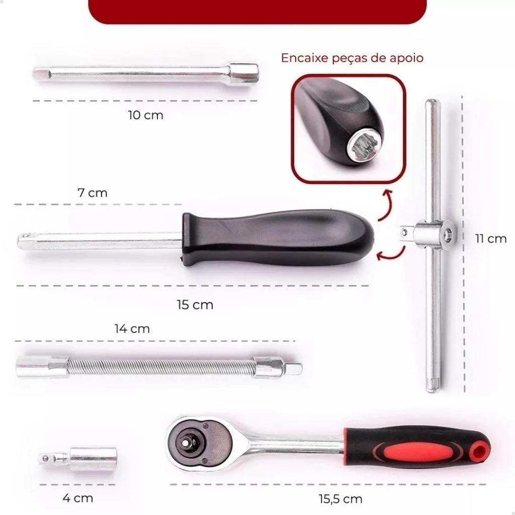 Kit De Ferramentas 46 Peças Jogo De Soquetes Chave Catraca Reversível Com Maleta Jogo Completo