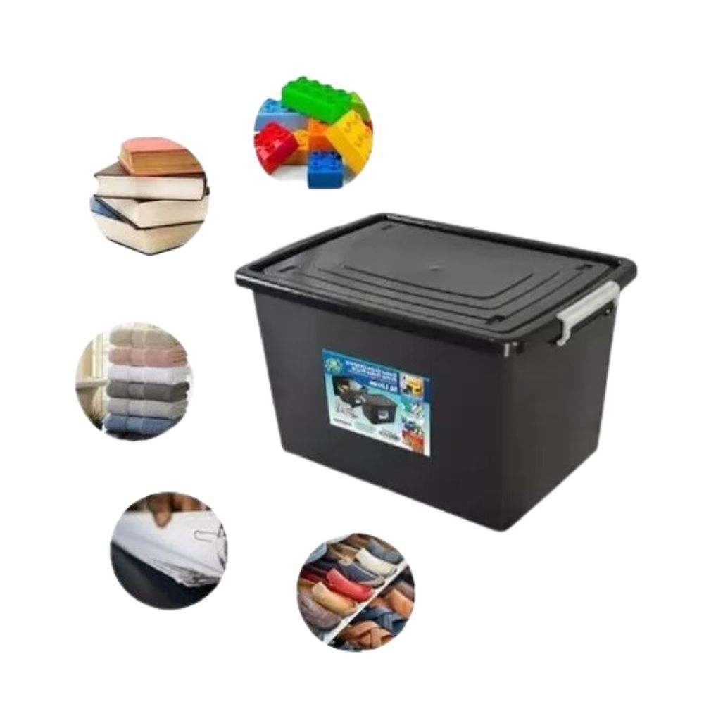 Kit 3 ou 2 Caixas Organizadoras 56 Litros C/ Tampa e Trava Cesta Multiuso Tamanho Grande para guardar Brinq