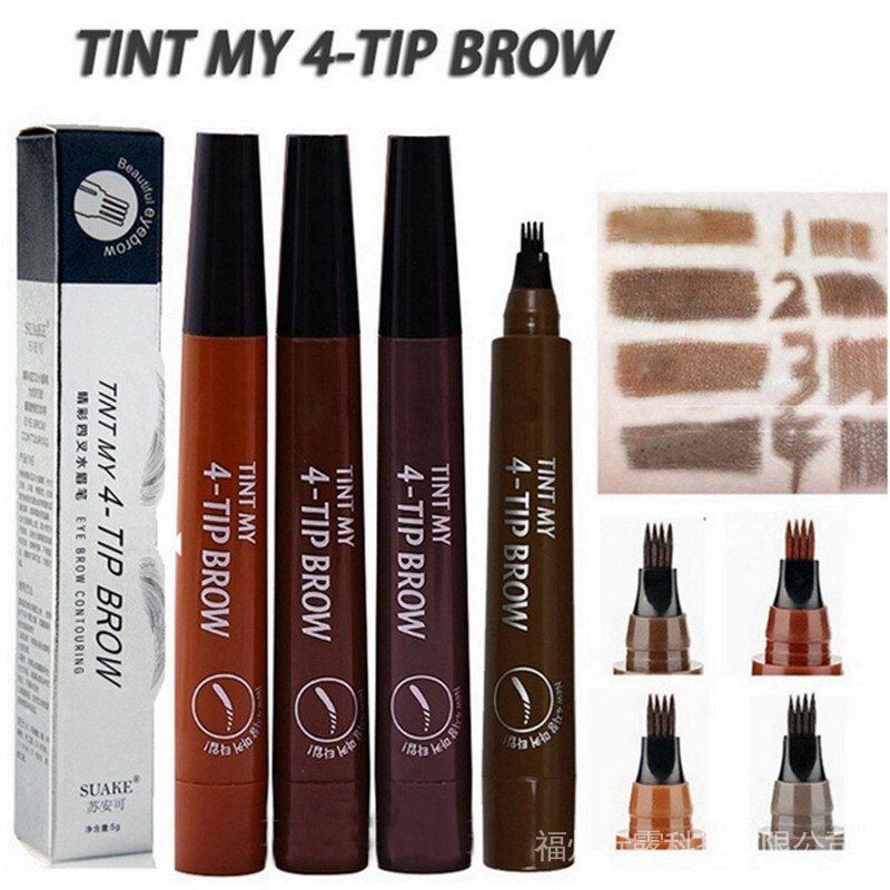 3D Caneta Para Sobrancelhas Microblading Eyebrow Pen À Prova D'água 4 Pontas De Garfo Lápis Tatuagem De Longa Duração Esboço Profissional Fino De 4 Cores Olhos Líquidos