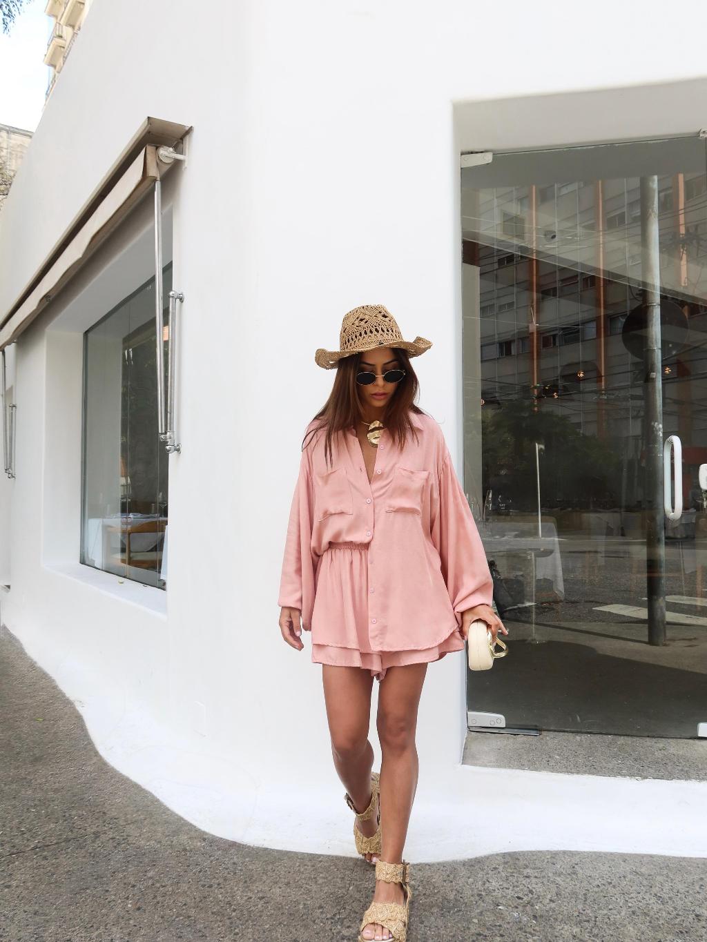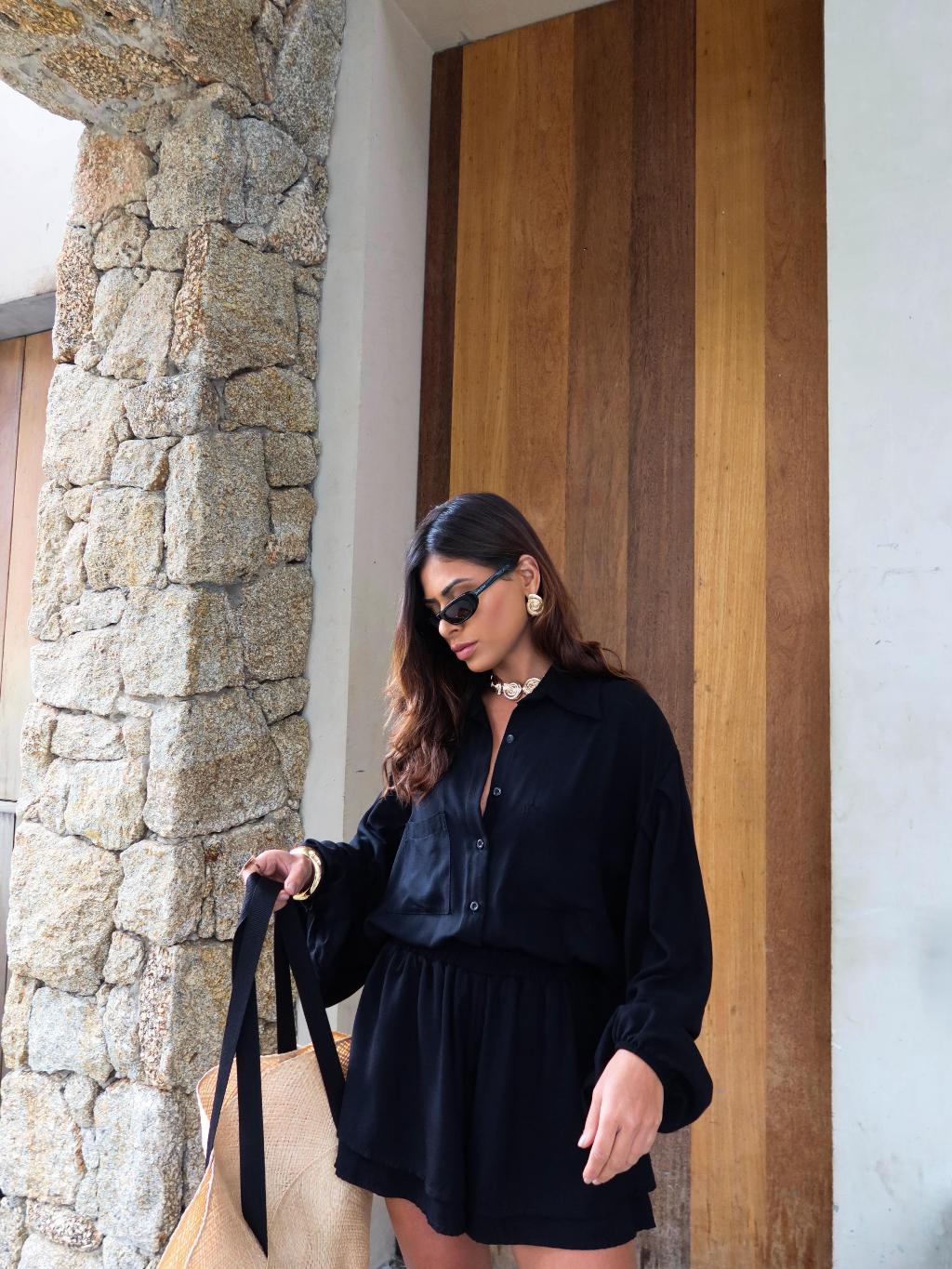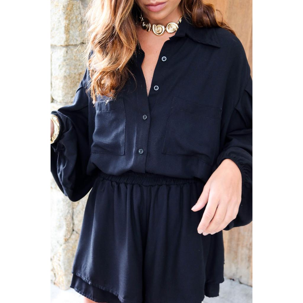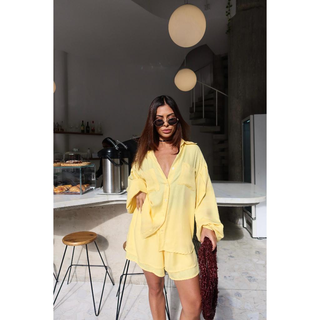 CONJUNTO CAMISA BATA COM SHORTS PERFEIÇÃO E ESTILO CHAMISE E SHORTS SOLTINHO