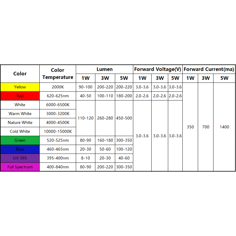 50pcs 1W 3W 5W Lâmpadas LED De Alta Potência Diodos Full Watt Branco Vermelho Azul Verde Amarelo RGB Para Blubs Spotlight Downlight Chip