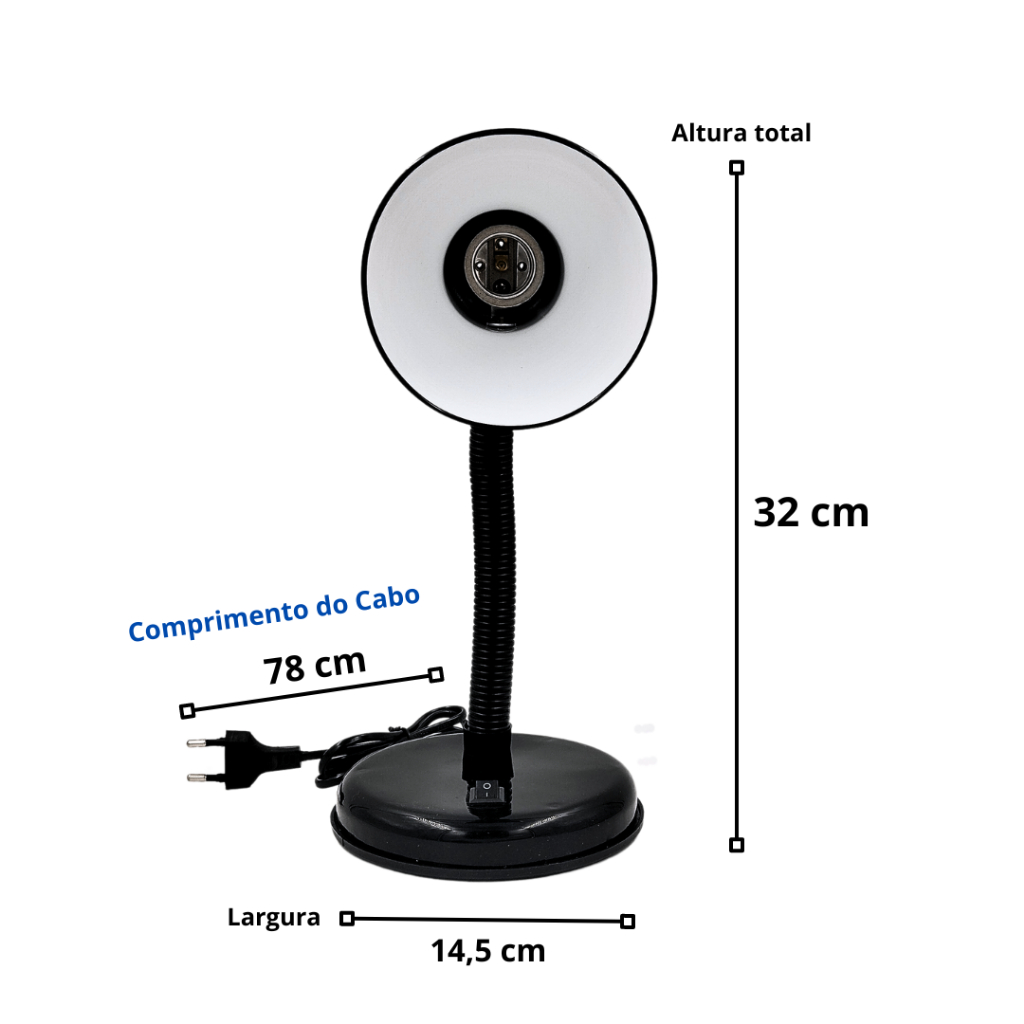 Luminária de Mesa e Escrivaninha e-27 com Base para Estudos e Escritórios Bivolt