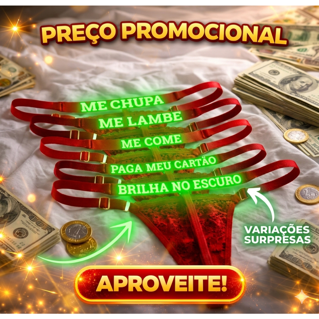 Calcinhas Fio Neon com Frase Que Brilha no Escuro Alça Ajustável Moda Íntima