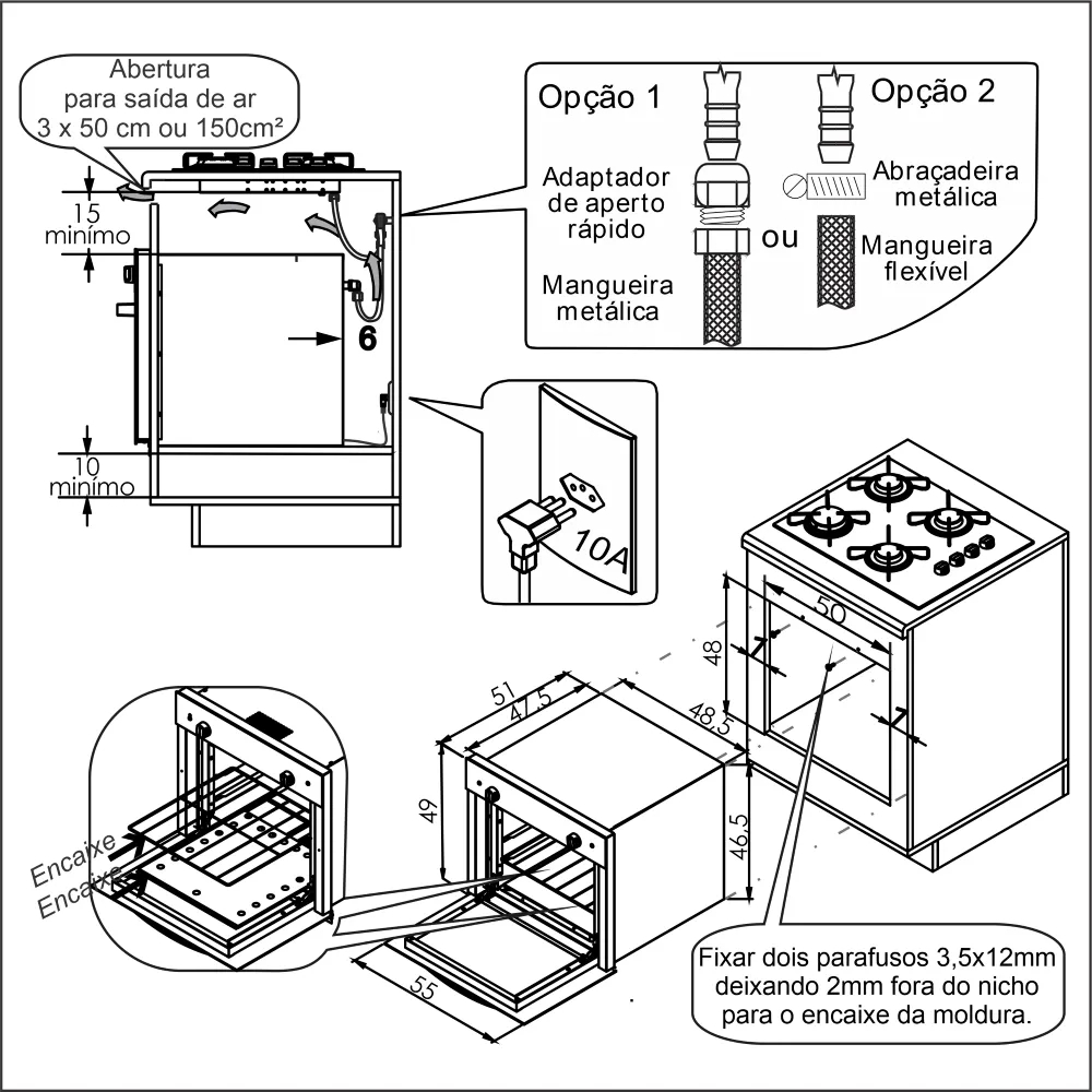 Forno a Gás de Embutir Stelar Topázio 46L Preto GLP ou Gás Natural GN