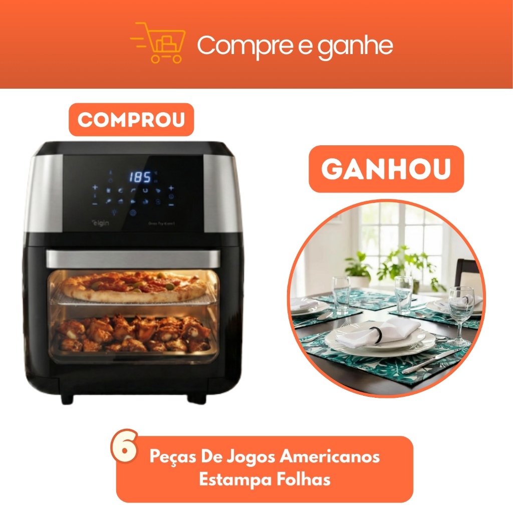 Fritadeira Oven Fry 4 em 1 Elgin Display Digital 12 Litros 1800W + Brinde Jogo Americano