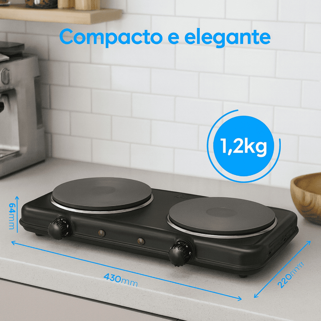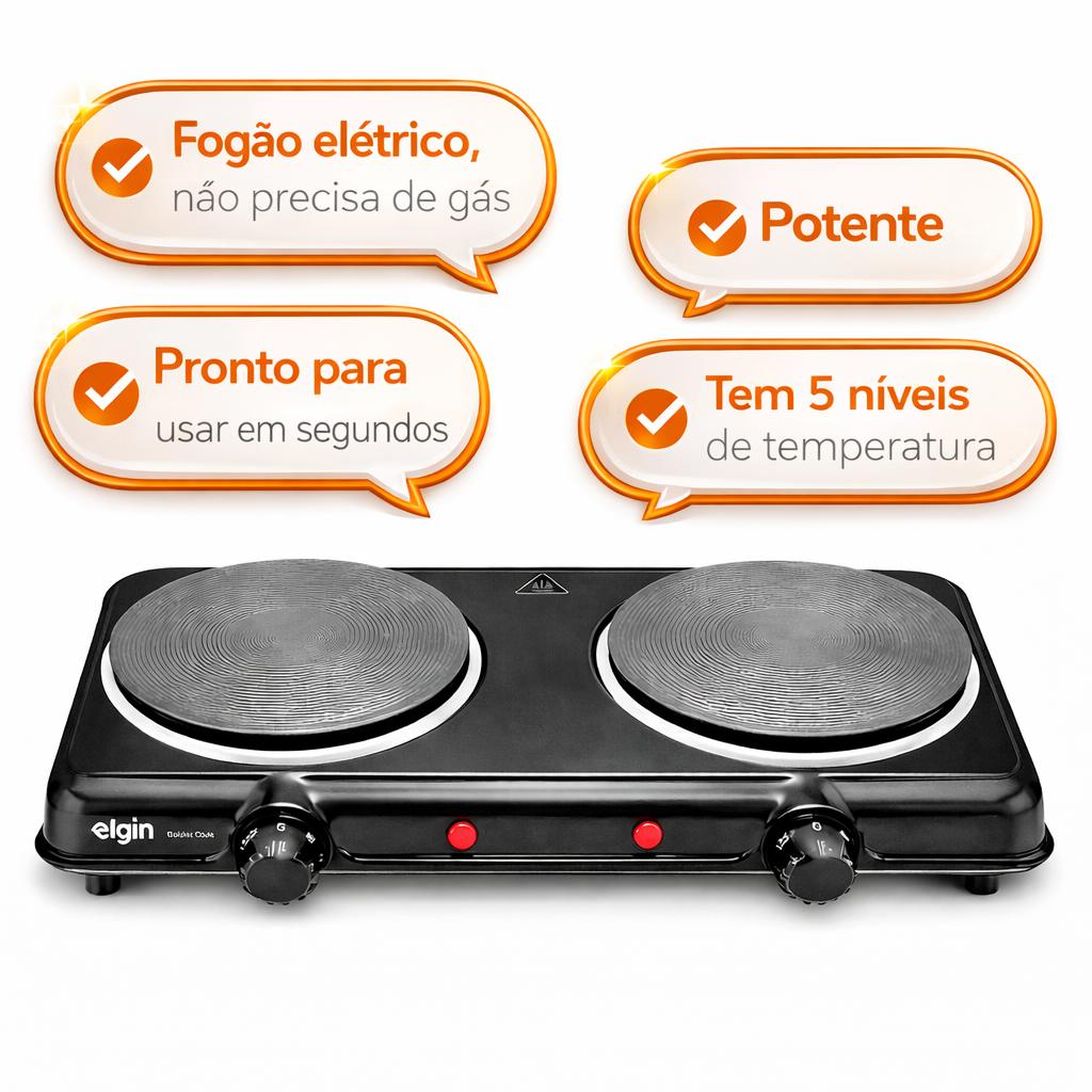 Fogão Elétrico Portátil 2 Bocas 2000W Elgin – Compacto, Potente, Aquecimento em segundos