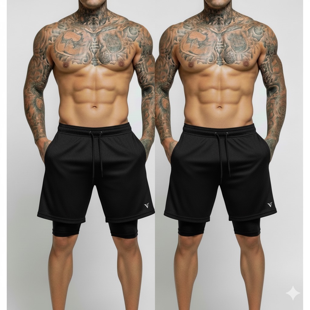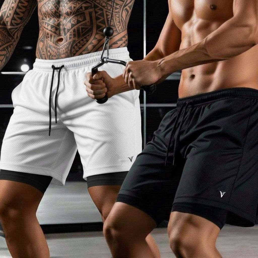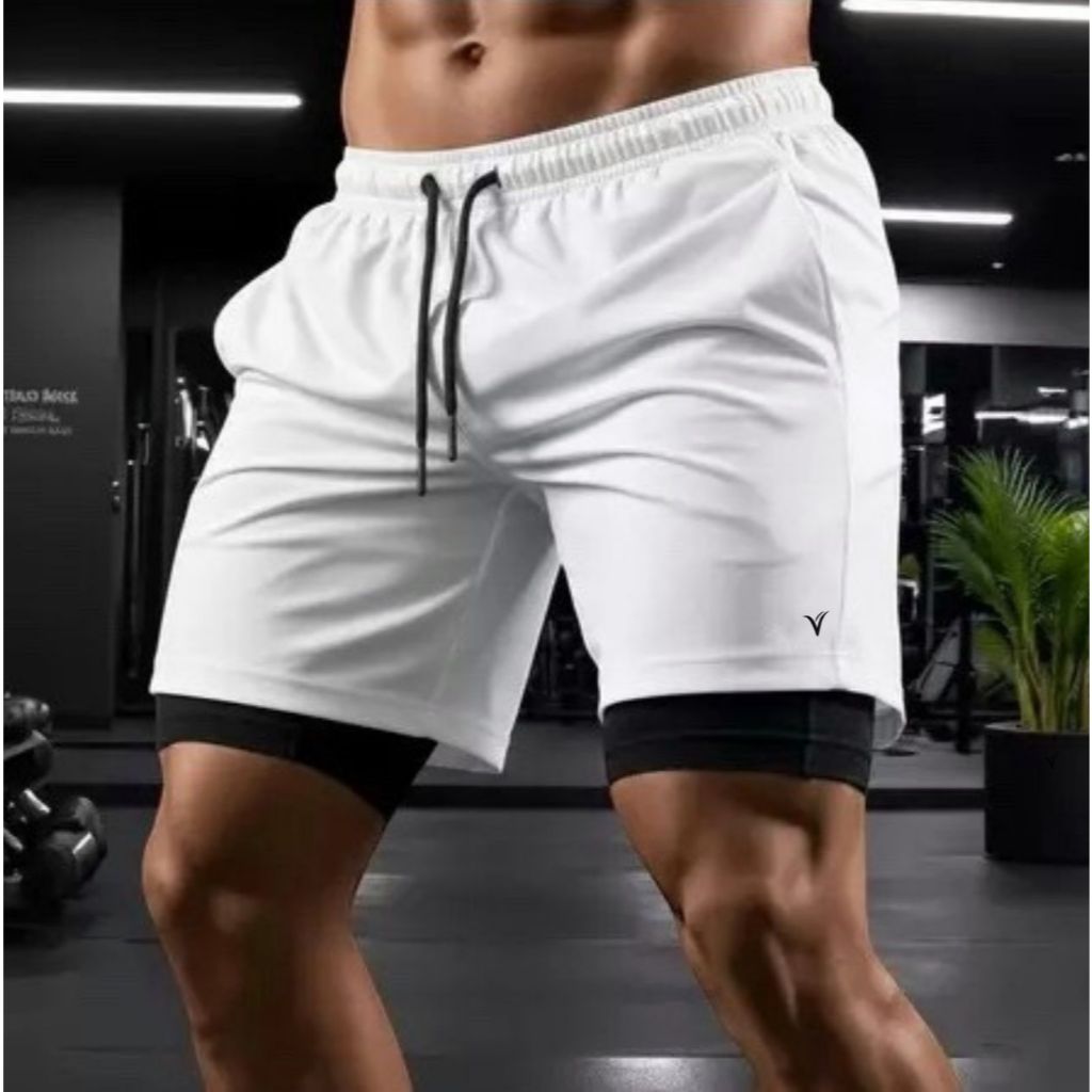 KIT 2 Shorts 2 em 1 DryFit VLS Original Elastano Academia Esporte Treino Masculino