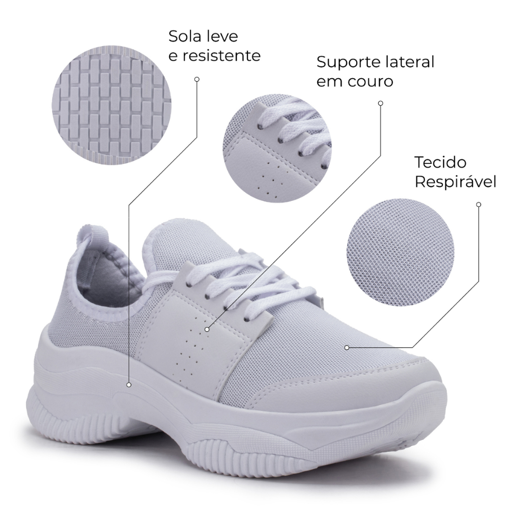 Tênis Feminino Ortopédico Esporão Detalhe Cadarço Em Couro Oferta