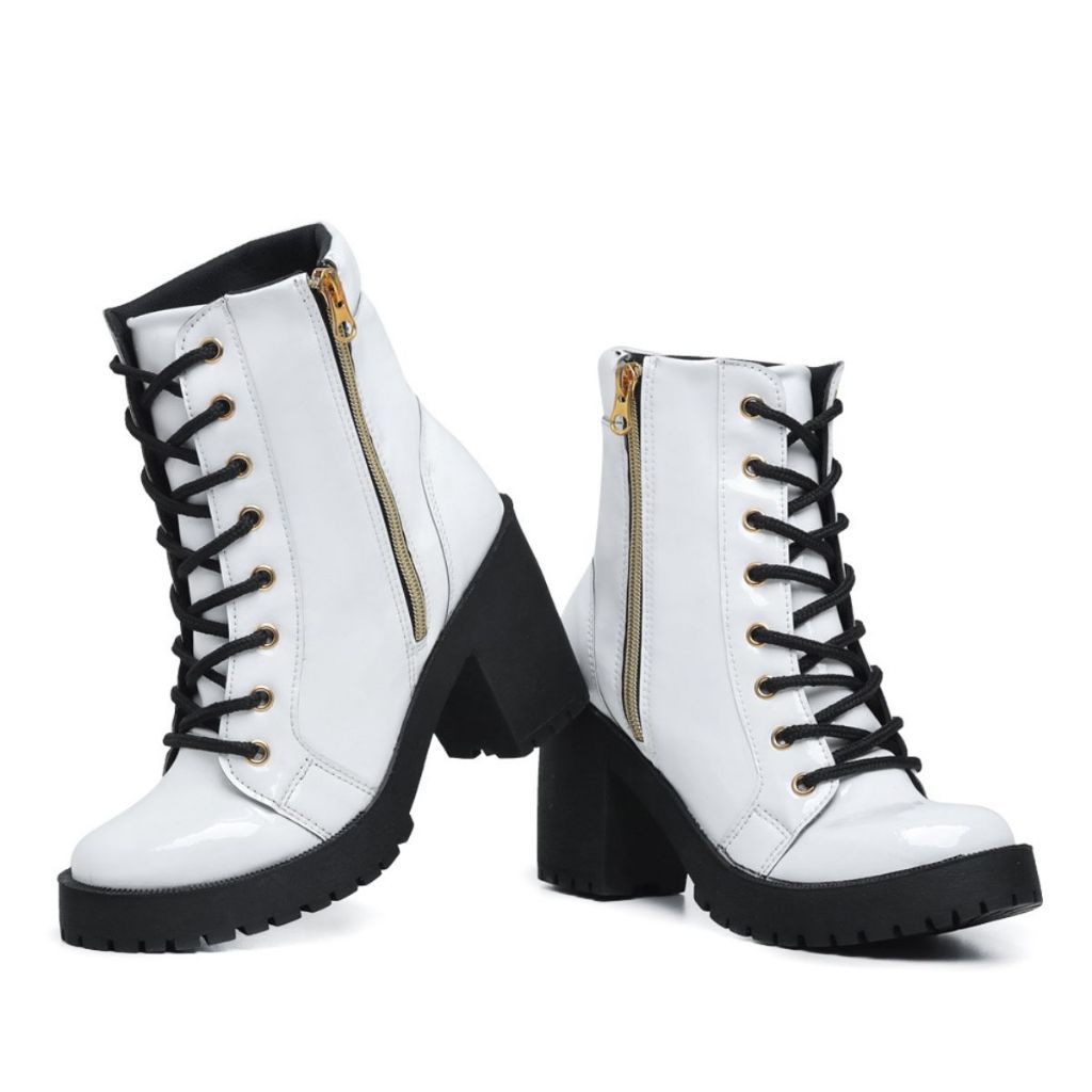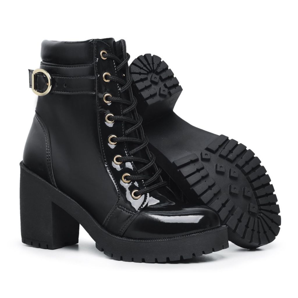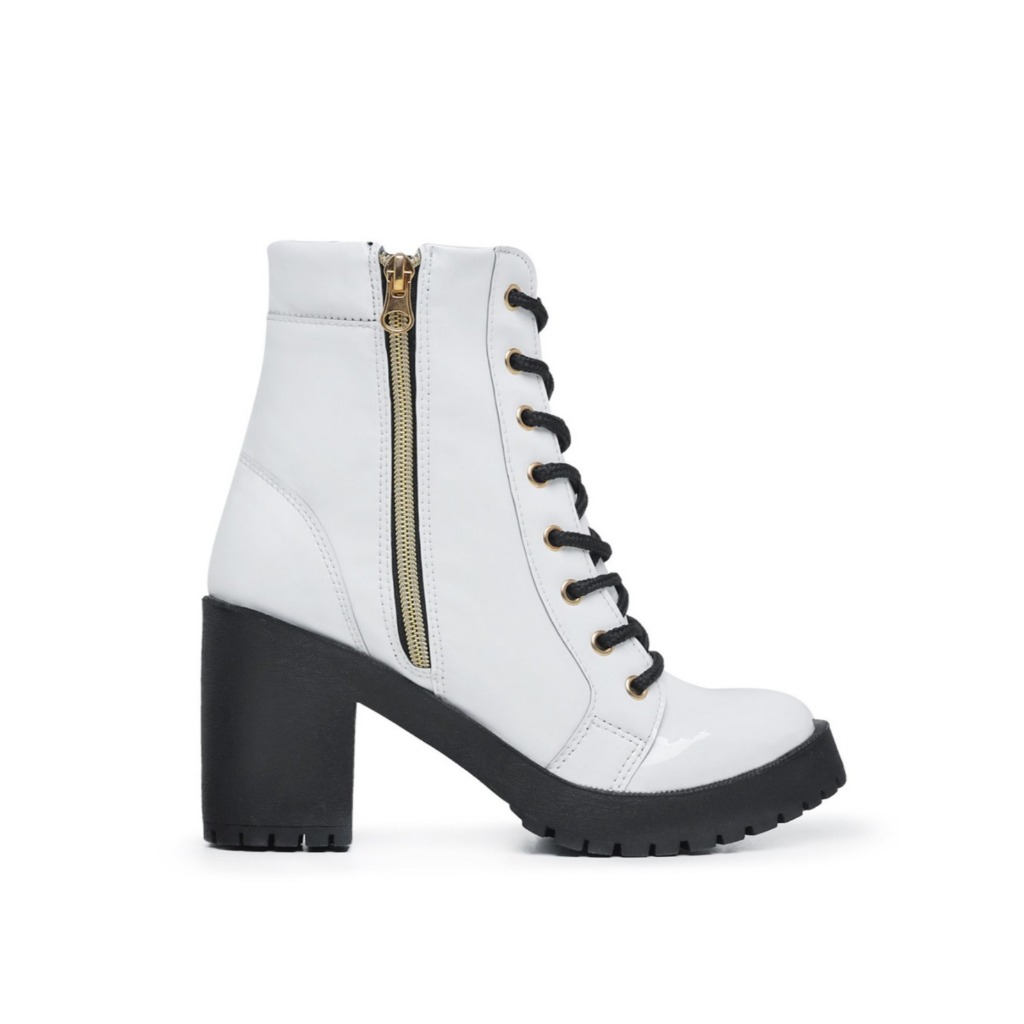 Bota Tratorada Feminina Com Zíper Lateral E Salto Confortável