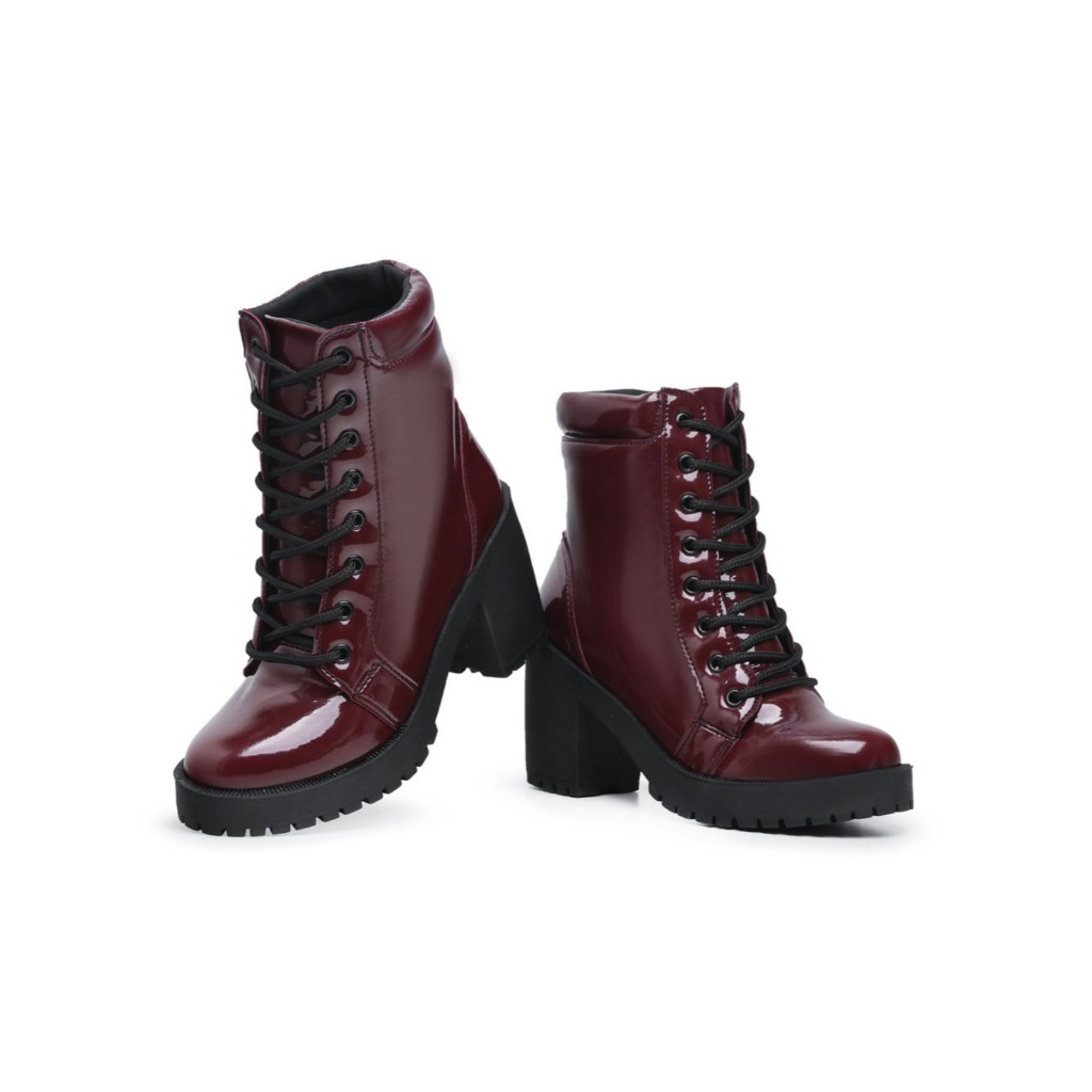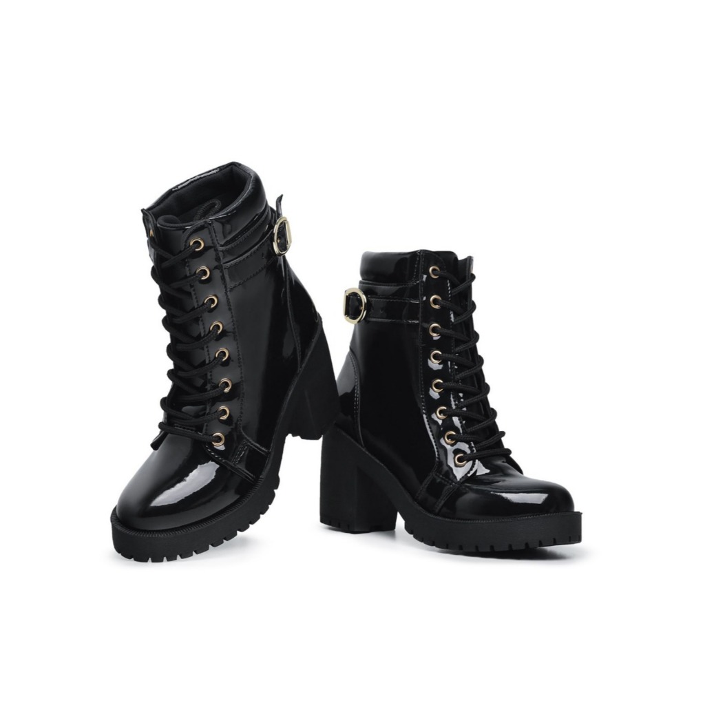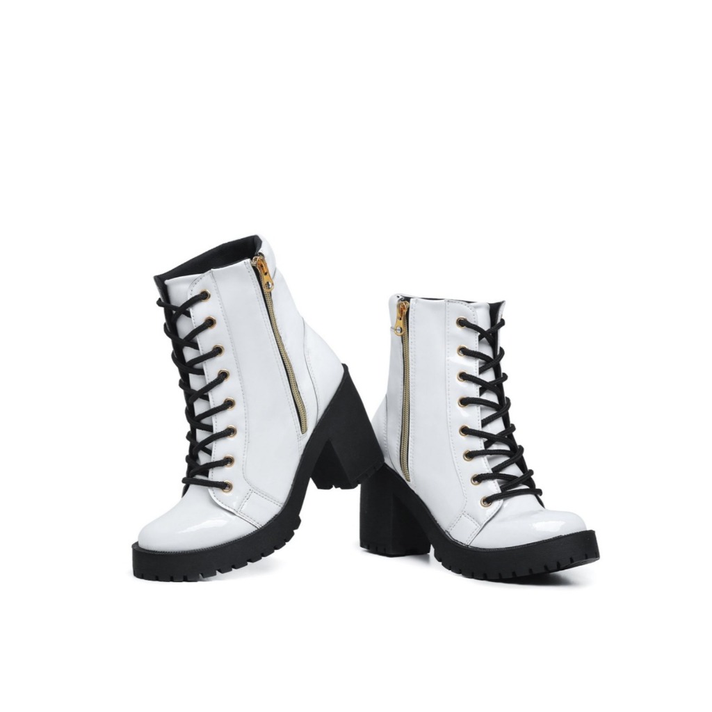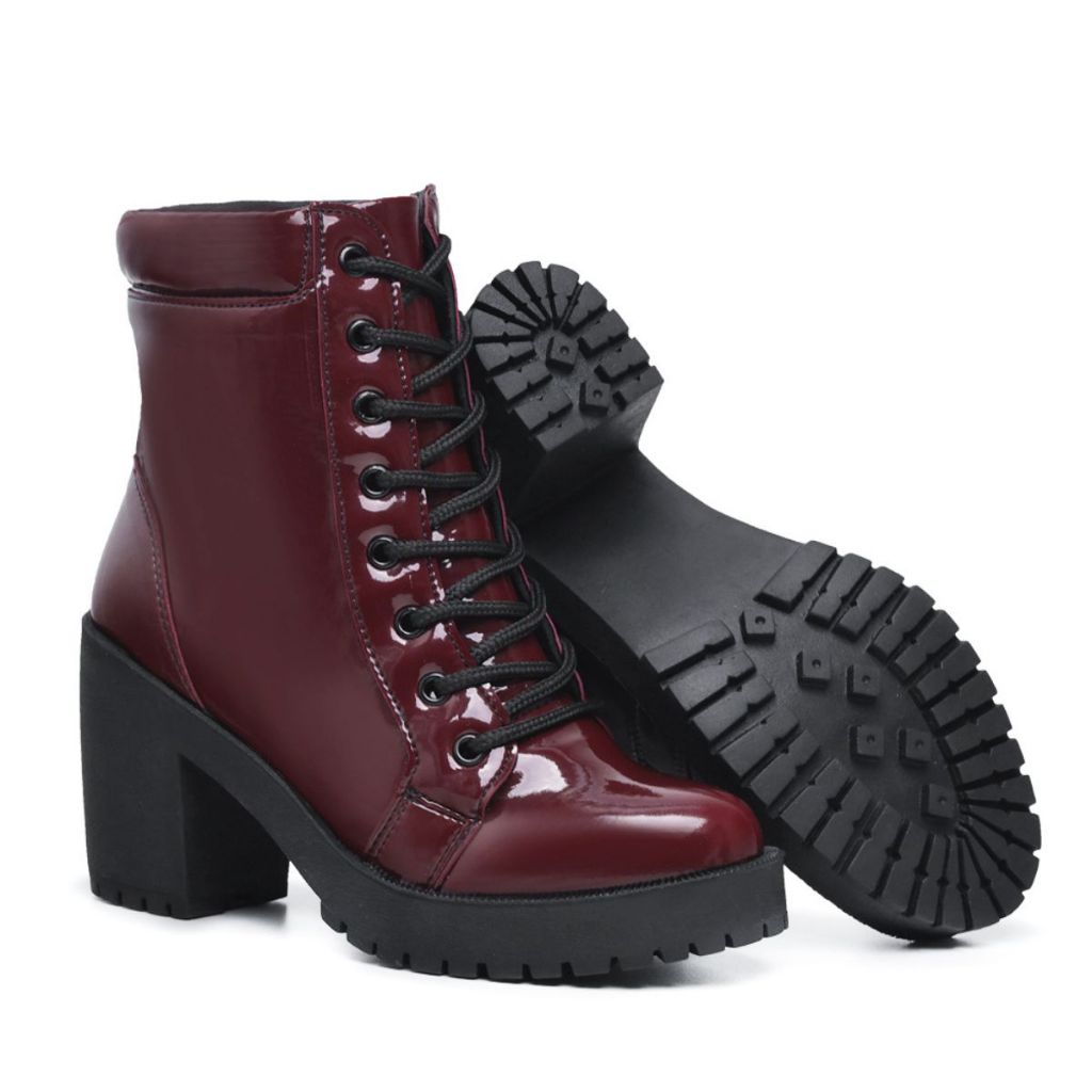 Bota Tratorada Feminina Com Zíper Lateral E Salto Confortável