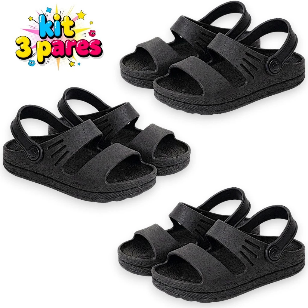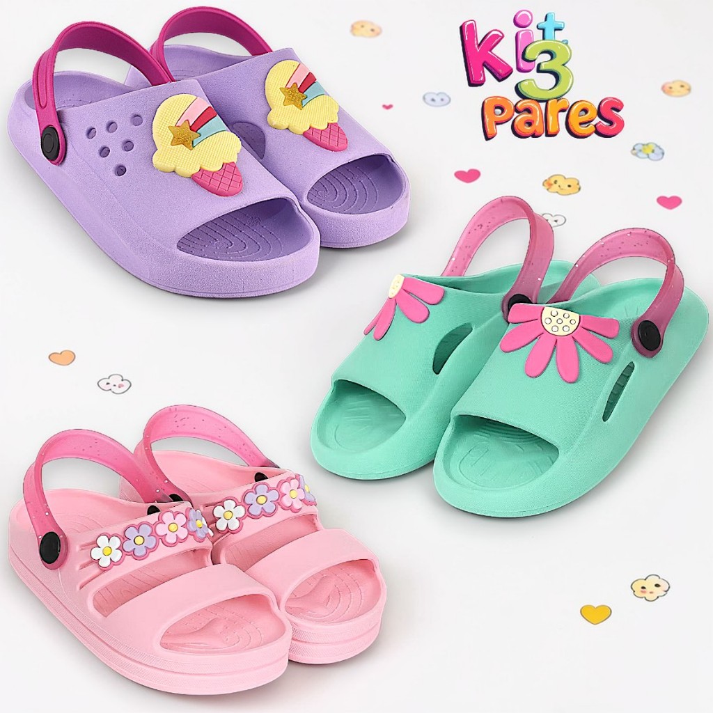 Kit 3 Pares Sandália Papete Infantil Menina Babuche Leve Confortável