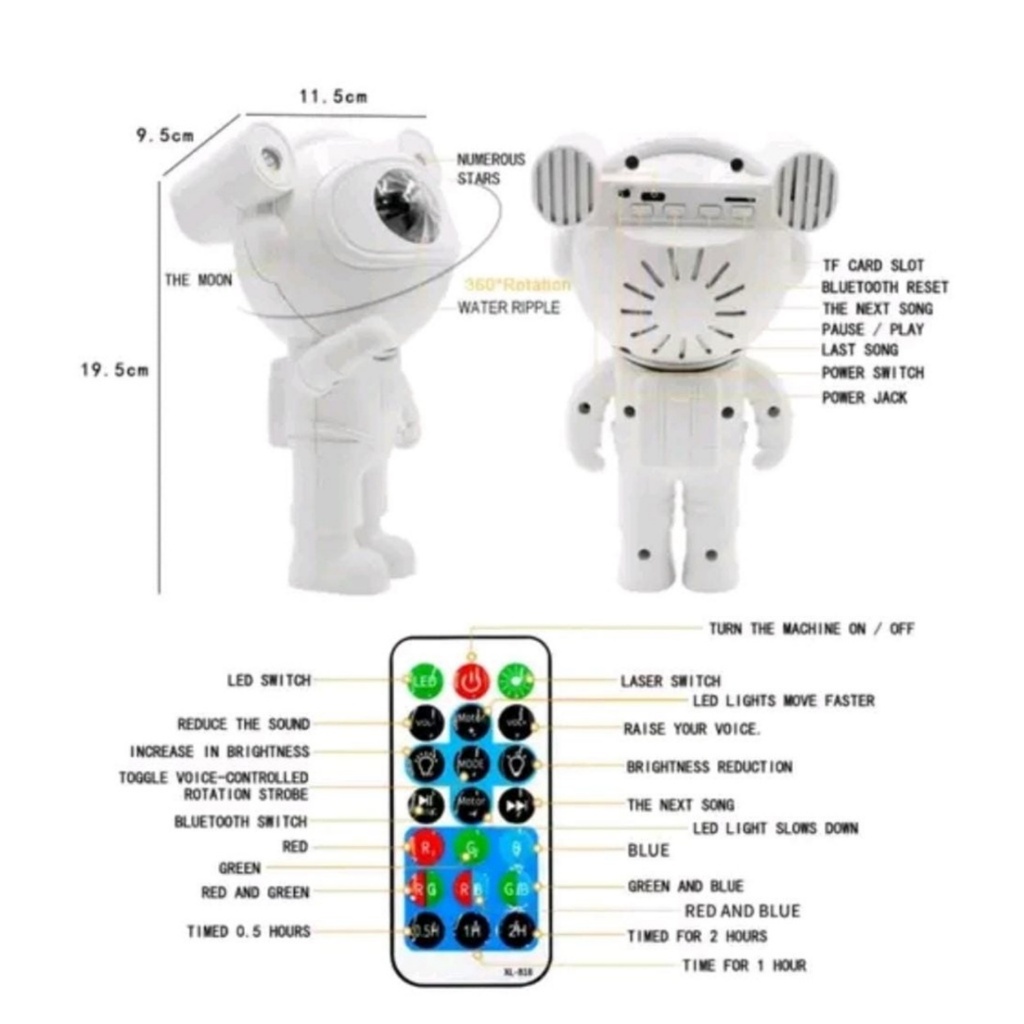 Projetor Astronauta De Luz Noturna Galáxia Estrelada Projetor De Luz de Teto Nebulosa Com Controle