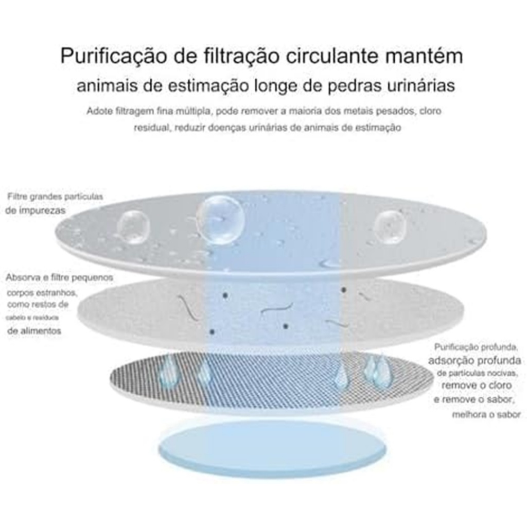 Fonte Bebedouro Automática p/ Gatos e Cães com Filtro Purificador e Água Sempre Limpa