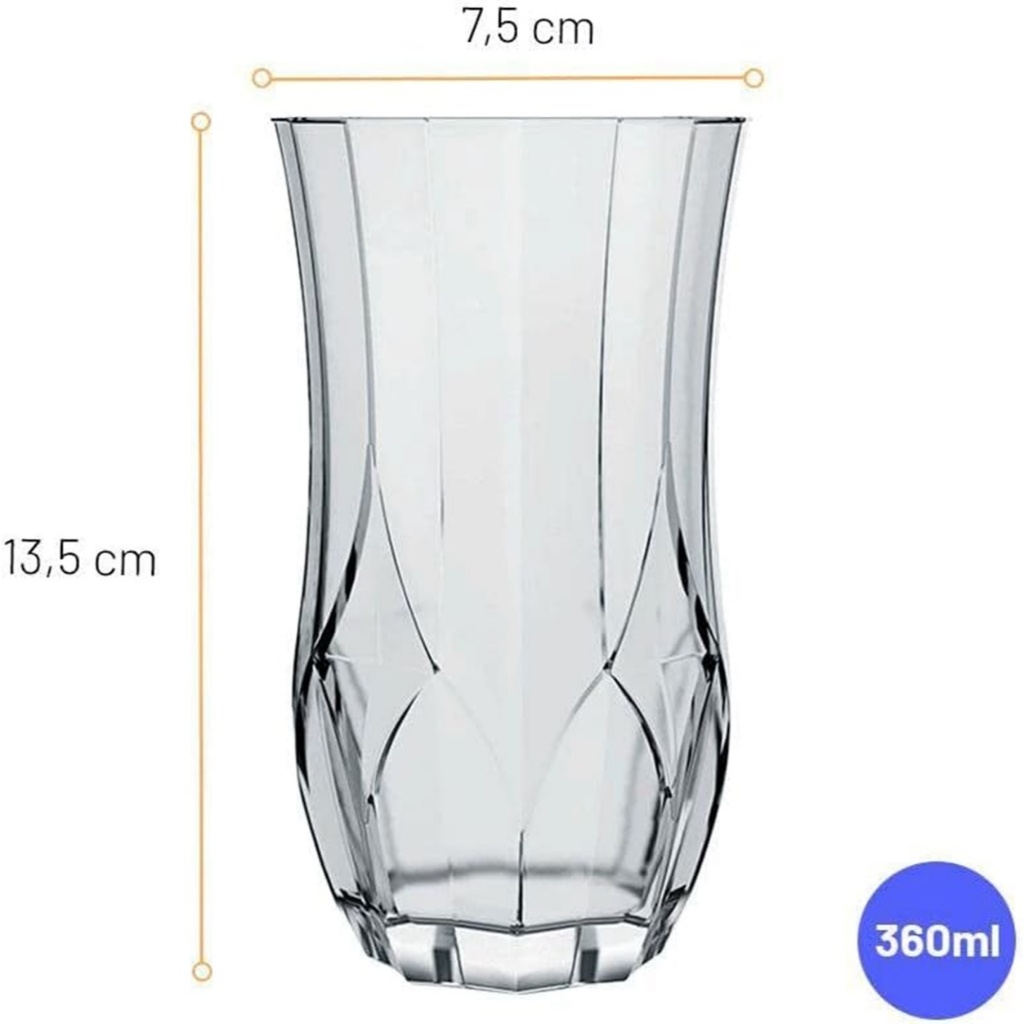 Jogo de Copos Vidro Suco Agua Longos Ópera 360ml Kit 6 ou 12 Un Nadir Figueiredo