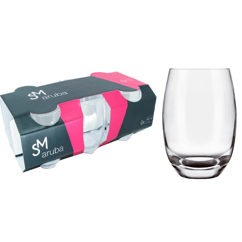 Jogo 6 e 12 de Copos De Vidro Redondo Aruba Cristal 465ml Mesa Posta Resistente Transparente Nadir