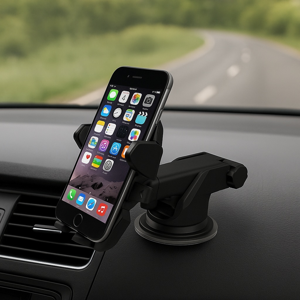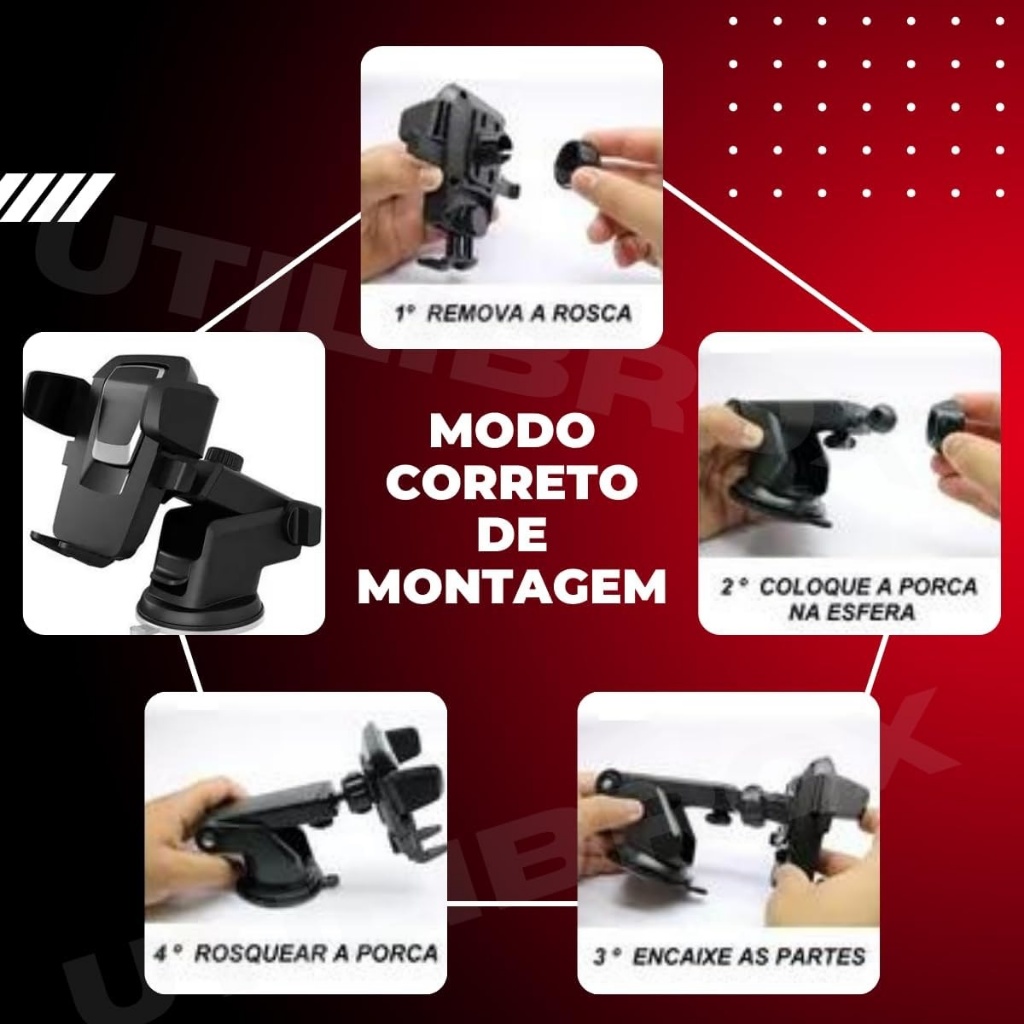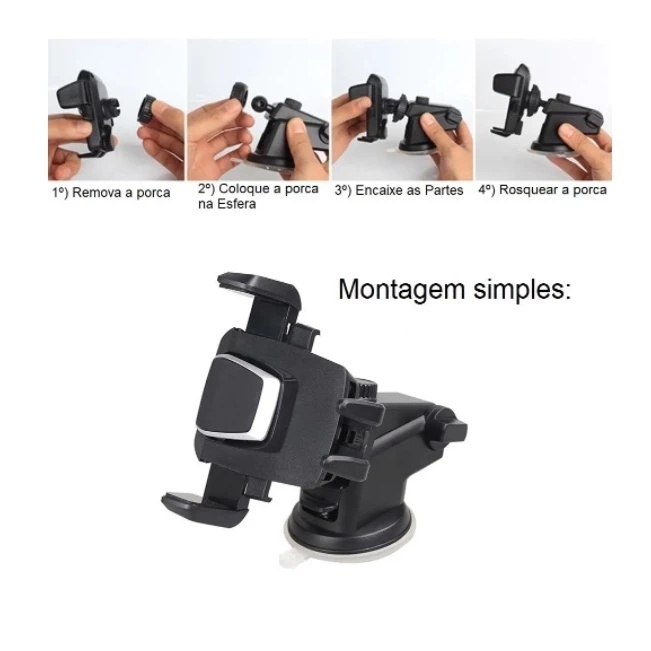 Suporte Veicular Universal Celular e GPS Trava Automática 360° Ajustável Ventosa Silicone Para Carro