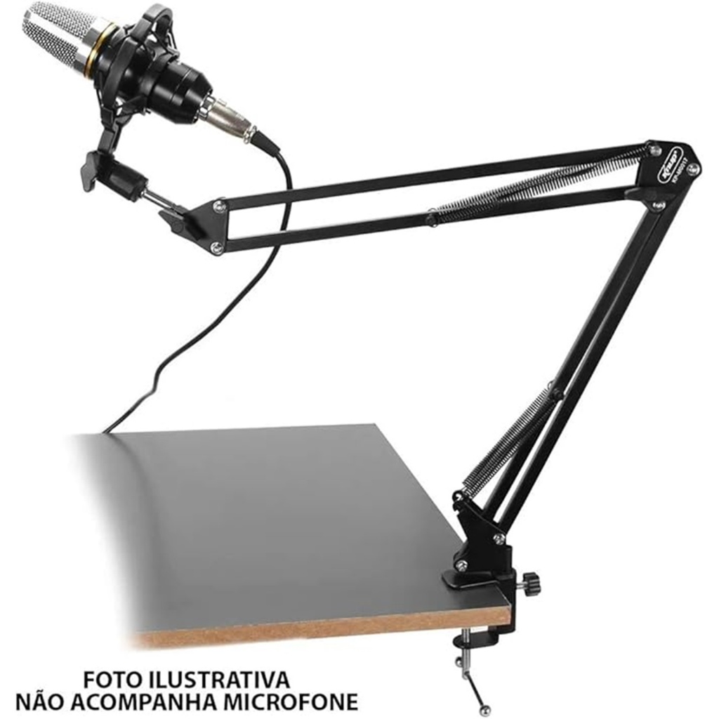 Braço Articulado de Mesa para Microfones e Celular Suporte Ajustável para Estúdio e Gravação