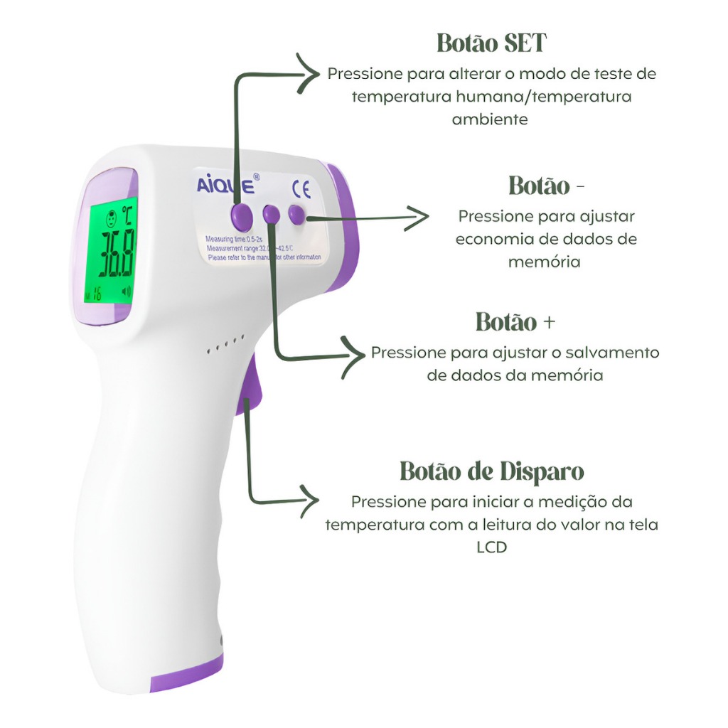 Termômetro Infantil Infravermelho Digital De Testa Laser Temperatura Sem Contato Medir Febre