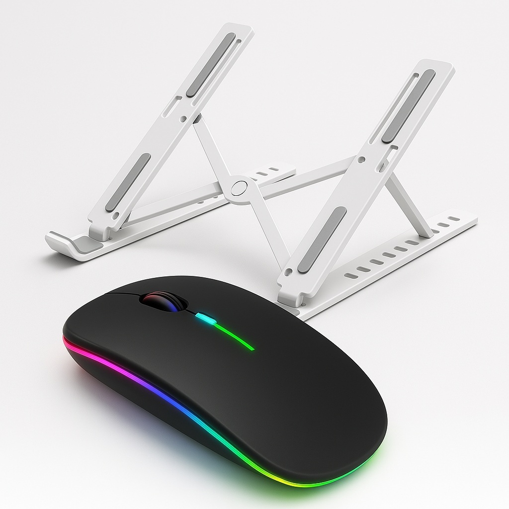 Kit Home Office Mouse Sem Fio Recarregavel Suporte Para Notebook Regulável Aluminio Mouse Pad Grande