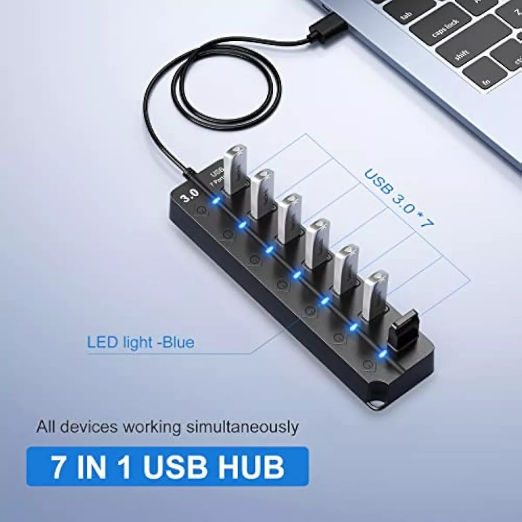 Hub Grande Cabo USB 3.0 Adaptador 7 Portas Alta Velocidade Notebook PC Mouse Teclado 5Gbps Pen Drive