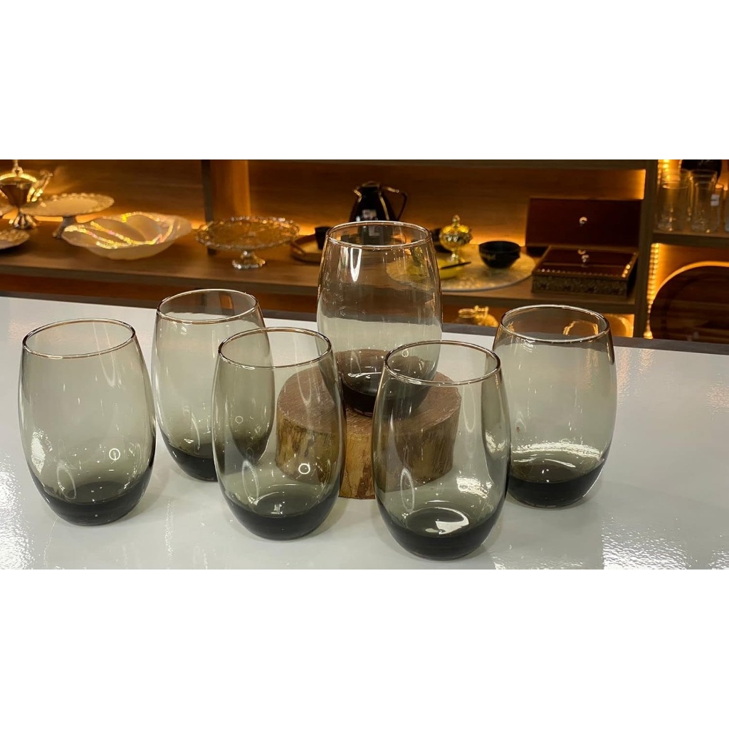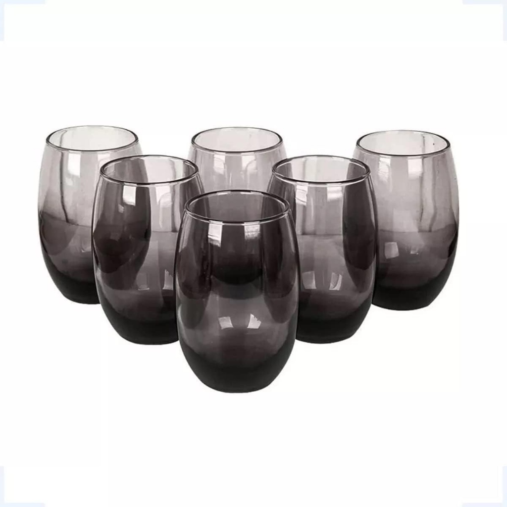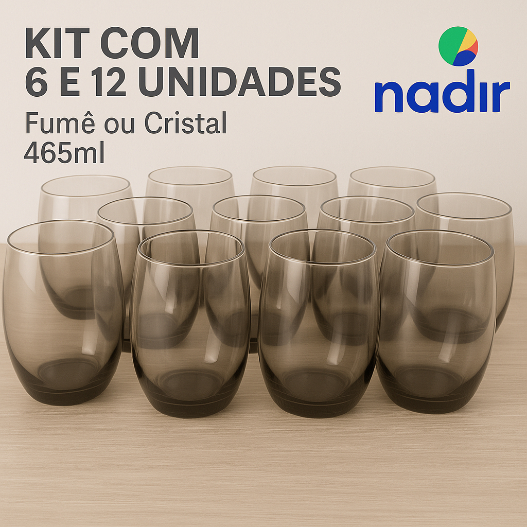 Jogo Copos Aruba Vidro Fumê e Cristal Multiuso Luxo 465ml Cinza 6 ou 12un Nadir Figueiredo