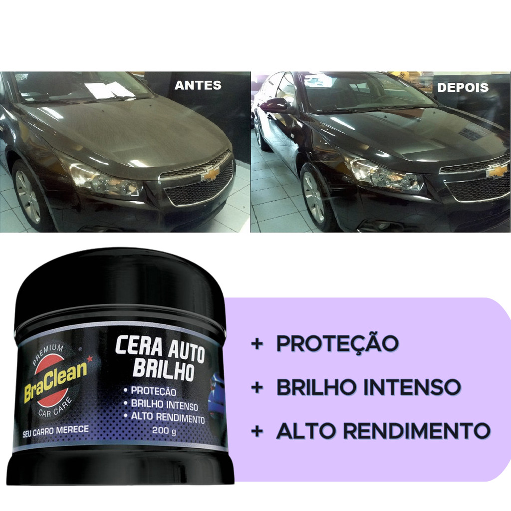 Melhor Cera Auto Brilho 200 g Protege Pintura Repelência de Água Aplicação Fácil e Rápida BraClean