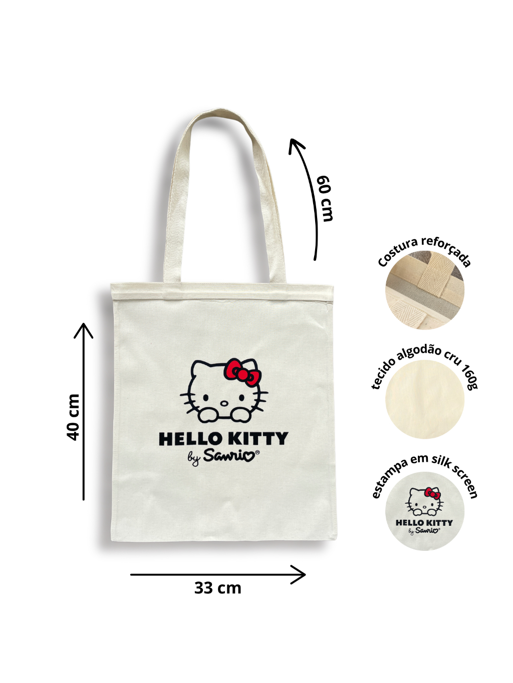 Bolsa Sacola Ecobag Algodão Cru hello kitty