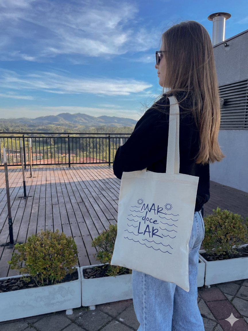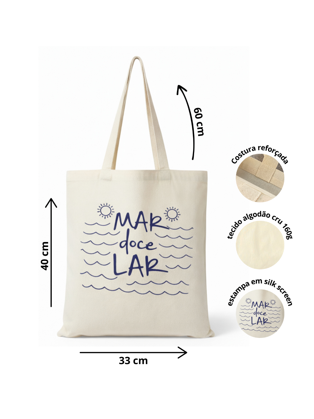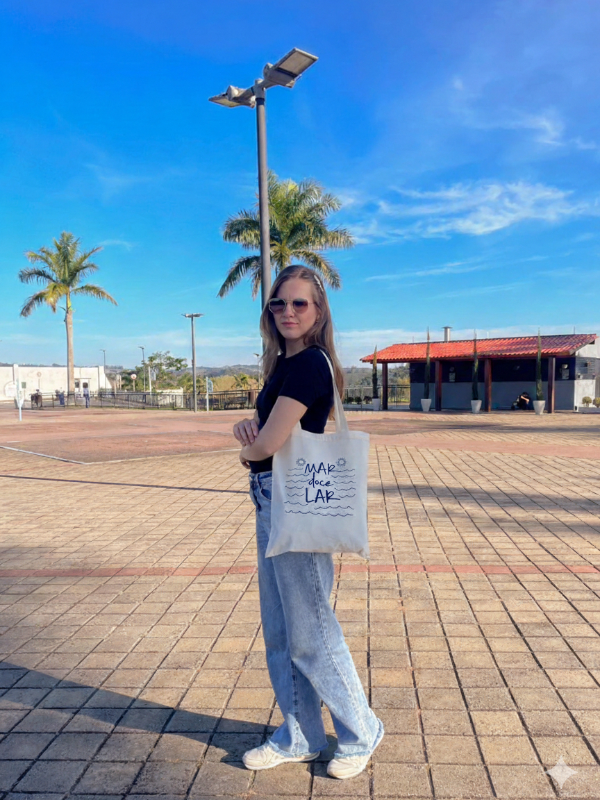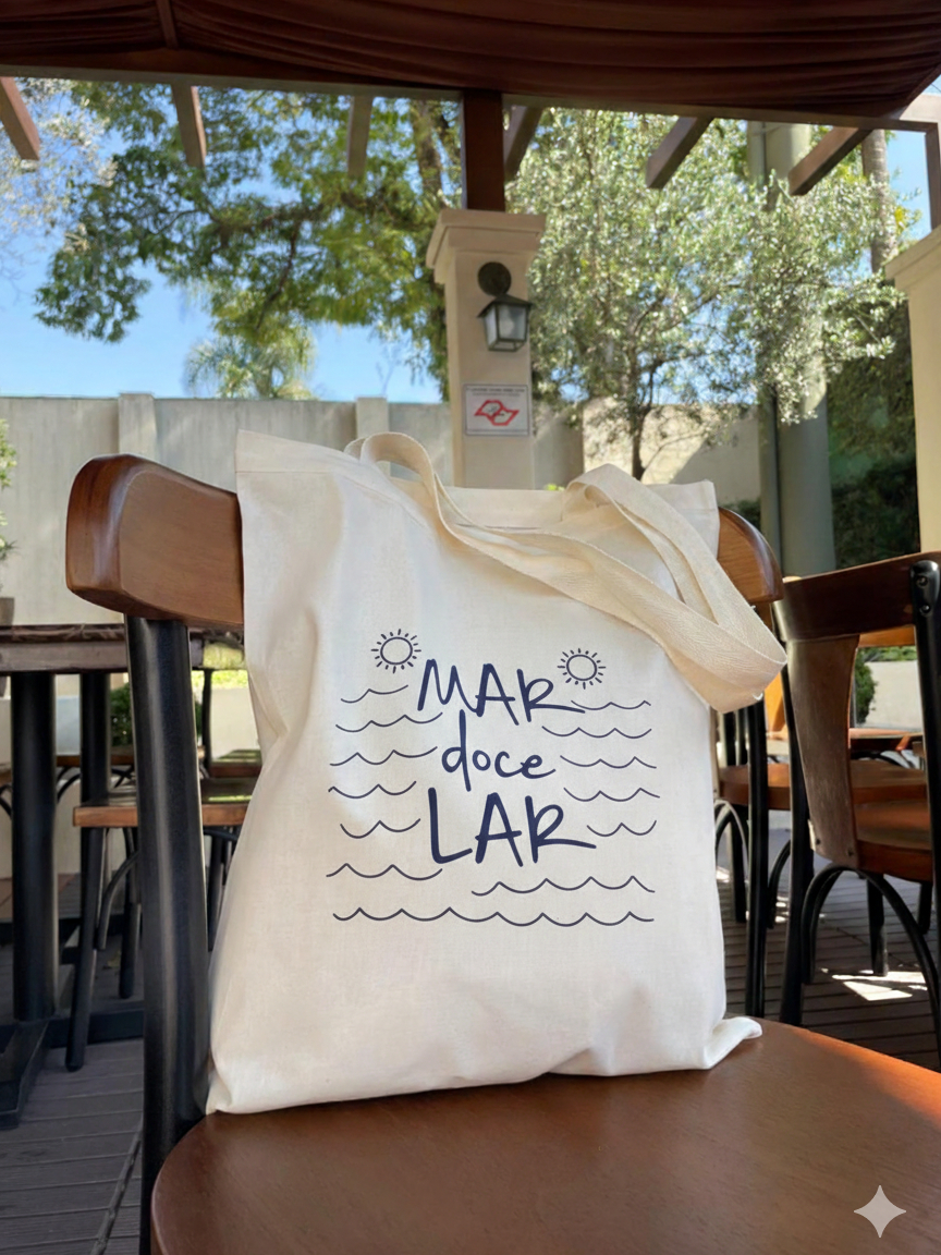 Bolsa de Praia Ecobag Mar doce lar bolsa ecologica 100% algodão tamanho 33x40cm