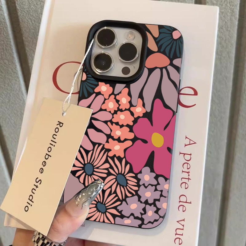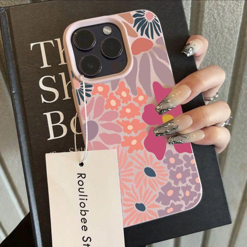Elegante Colorido Floral Design Couro Caso De Telefone Para iPhone 16 17 15 14 13 12 11 Pro Max Plus 16E XS Capa