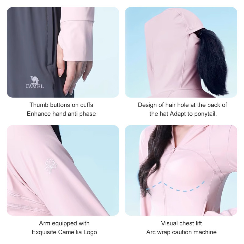 CAMEL SPORTS Roupas De Proteção Solar Femininas Slim Summer Ice Silk Casaco Fino Anti-UV Exterior Slimming