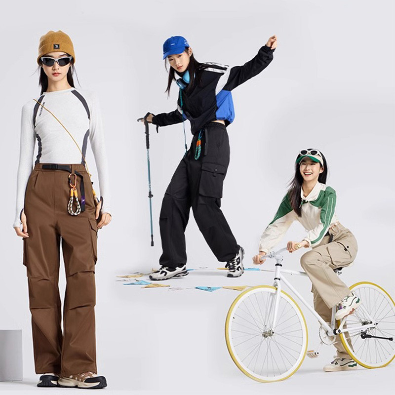 CAMEL SPORTS Macacão Retrô Americano Feminino Repelente De Água Casual Calça De Paraquedas De Perna Larga