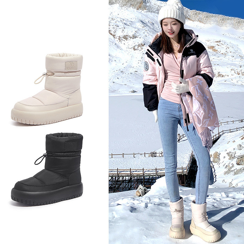 CAMEL Sports Sapatos Esportivos Femininos De Inverno Botas De Neve De Cano Médio Sola Grossa E Veludo Quente