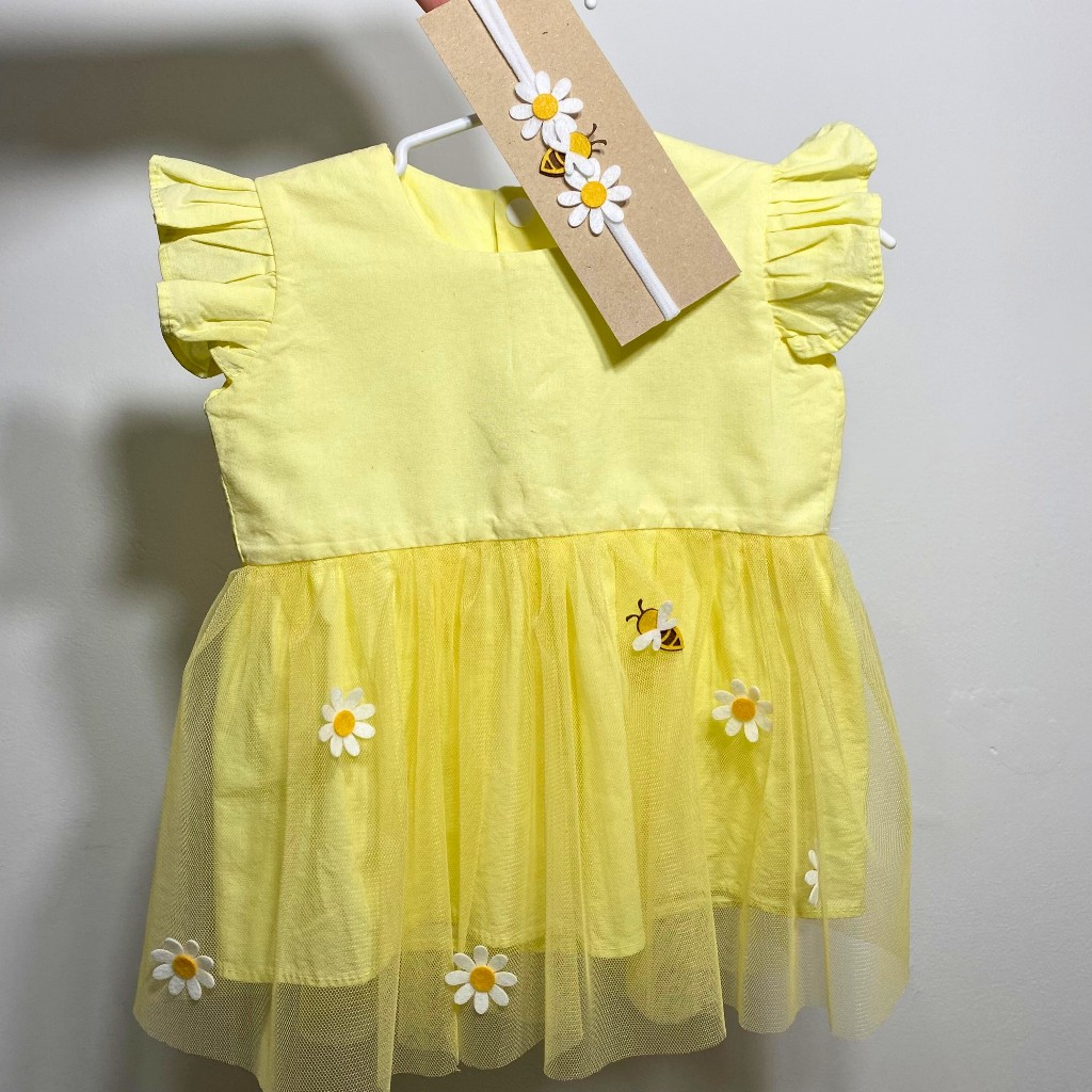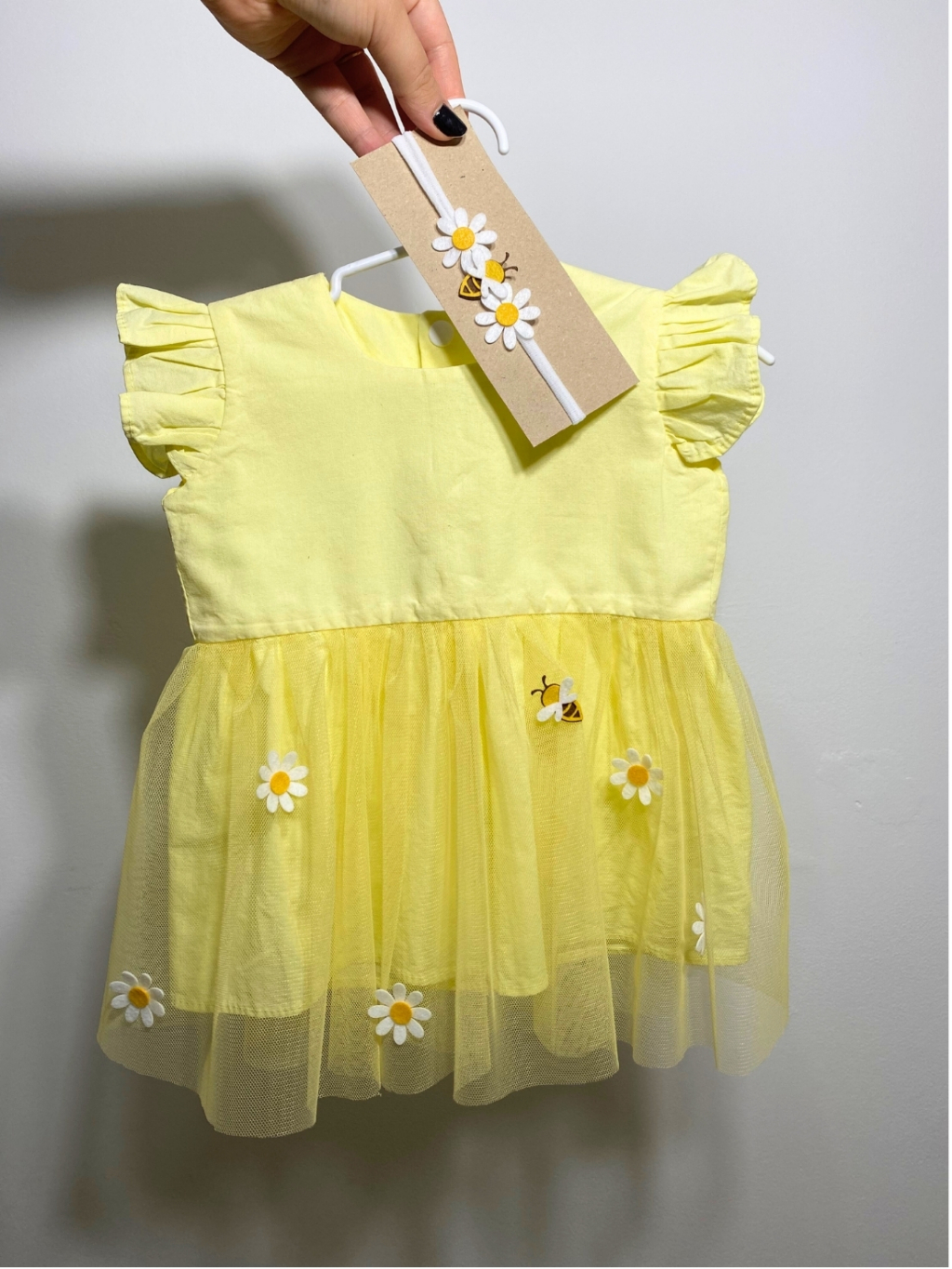 Vestido Infantil Menina Margarida Tule Luxo + Faixa de Cabelo - Ideal para Festas, Aniversário e Mesversário Temático