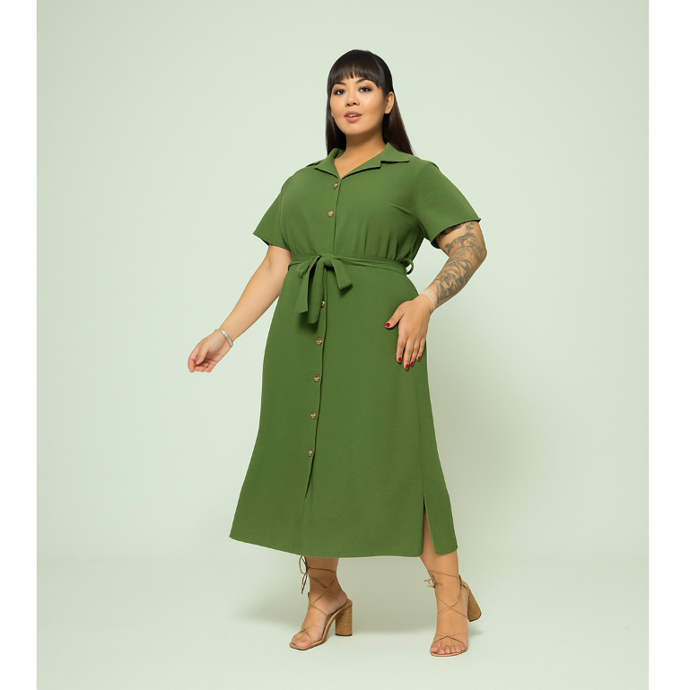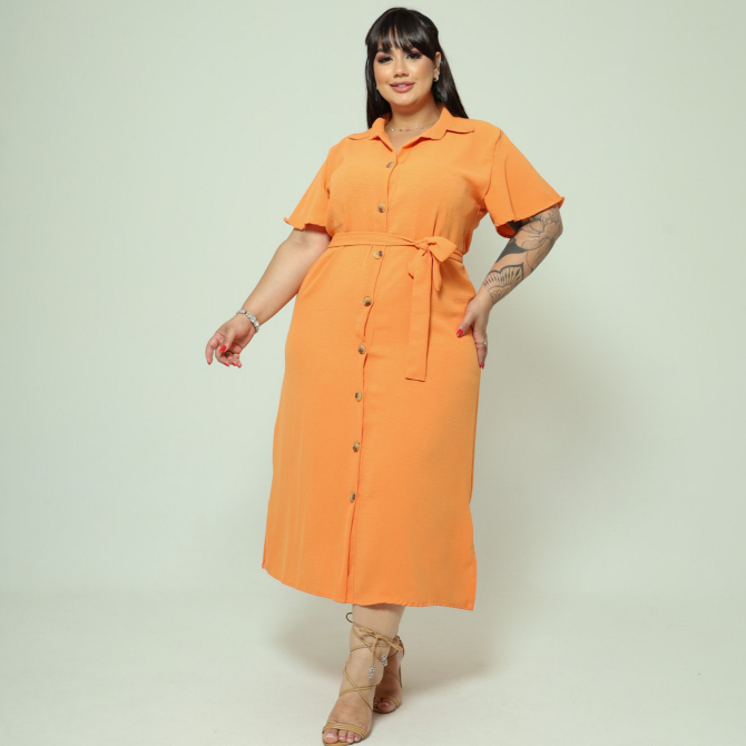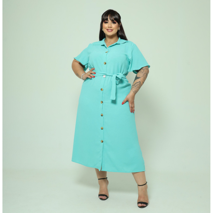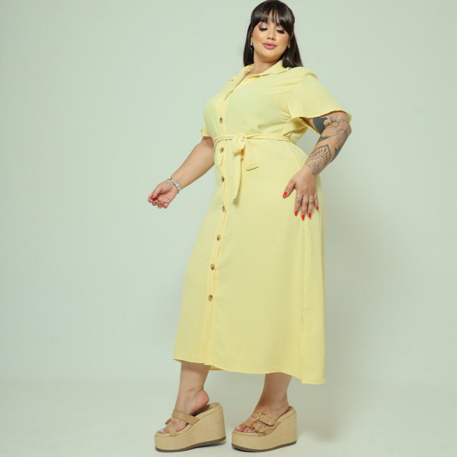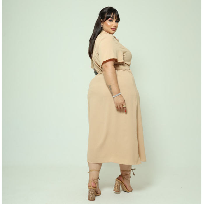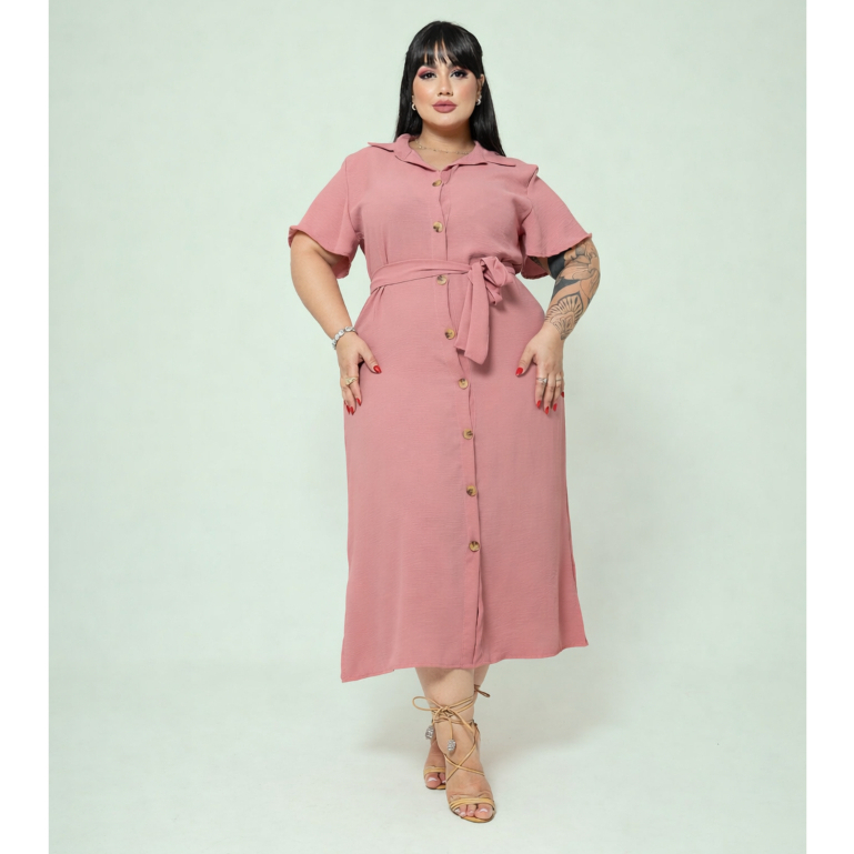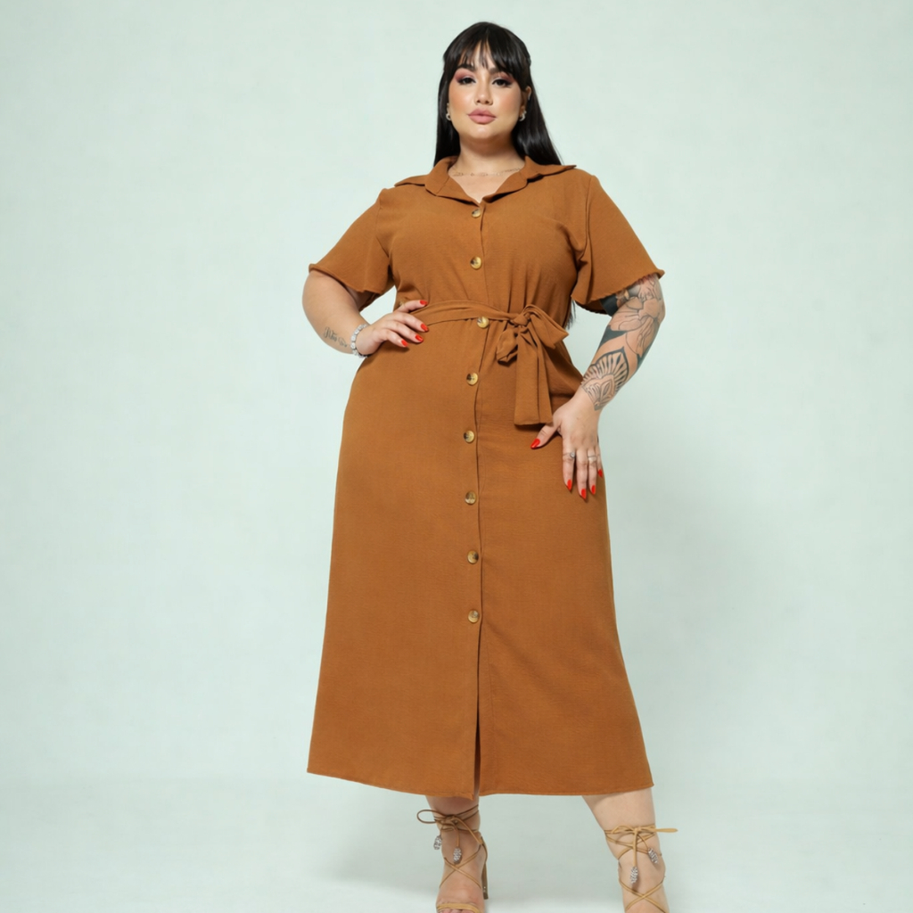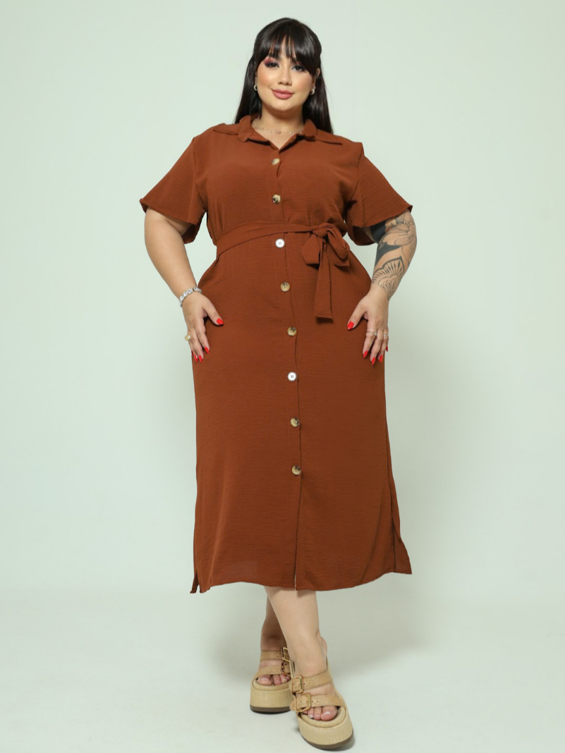 Vestido Chemise Midi Com Cinto