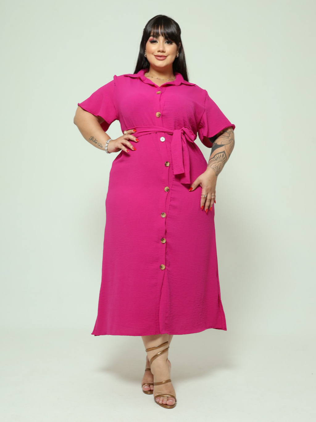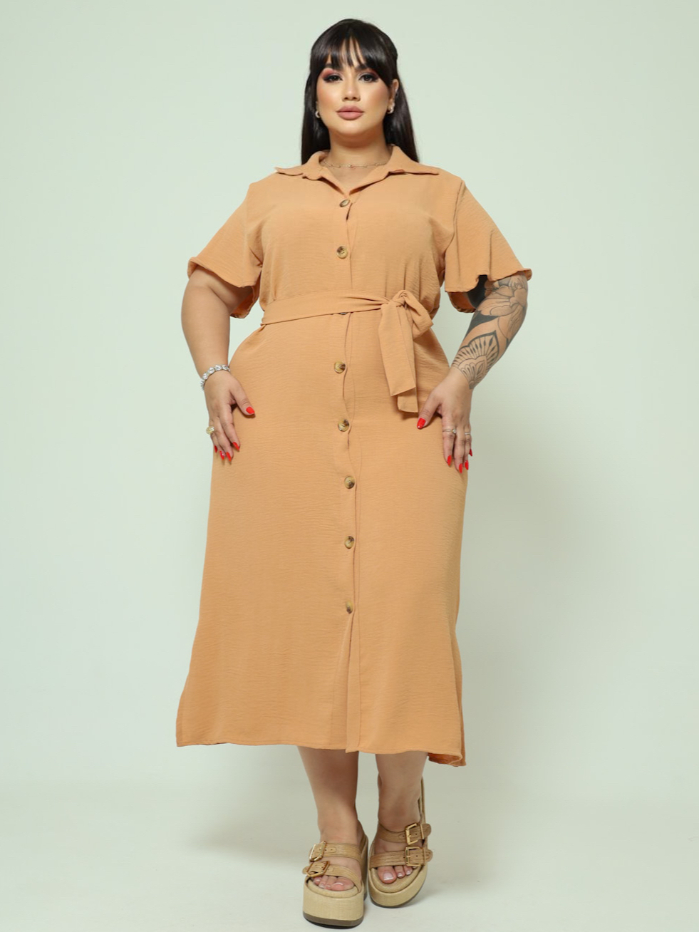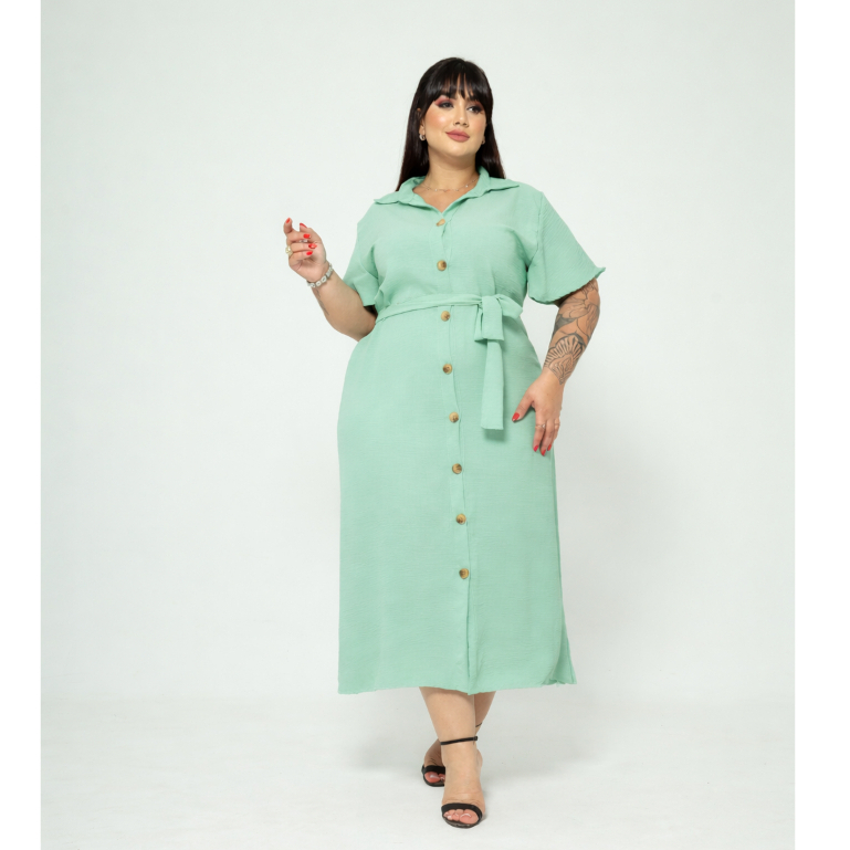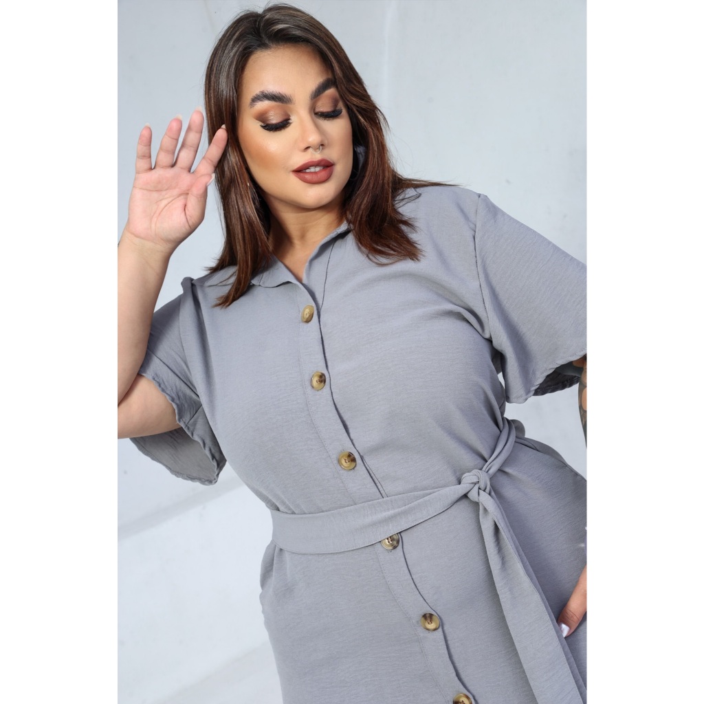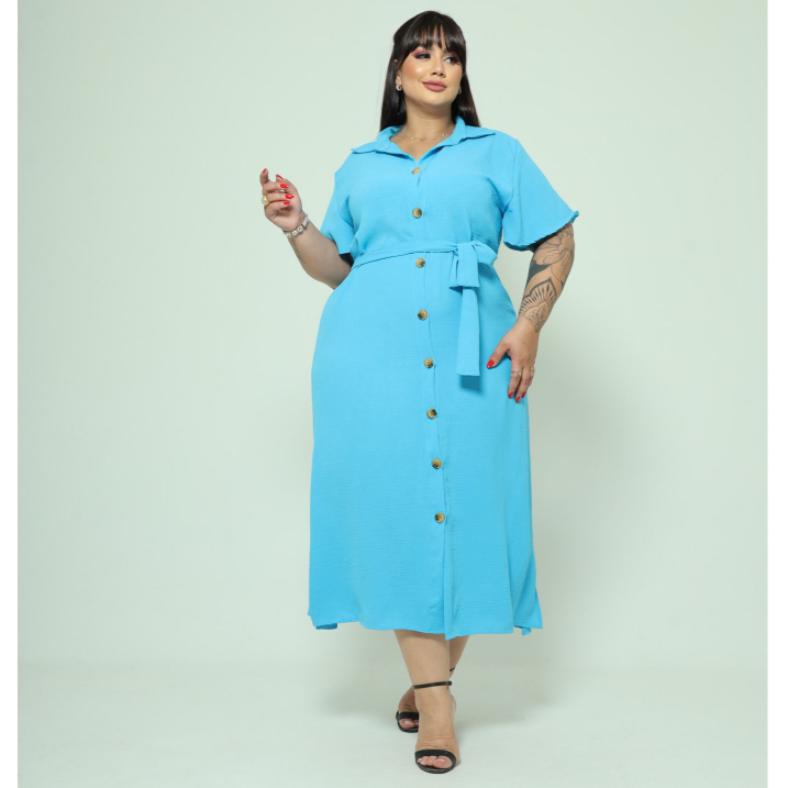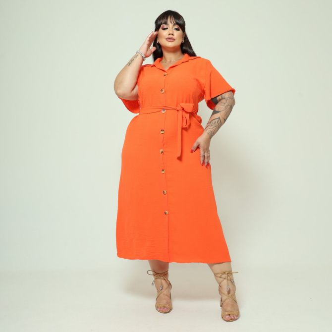 Vestido Chemise Midi Com Cinto